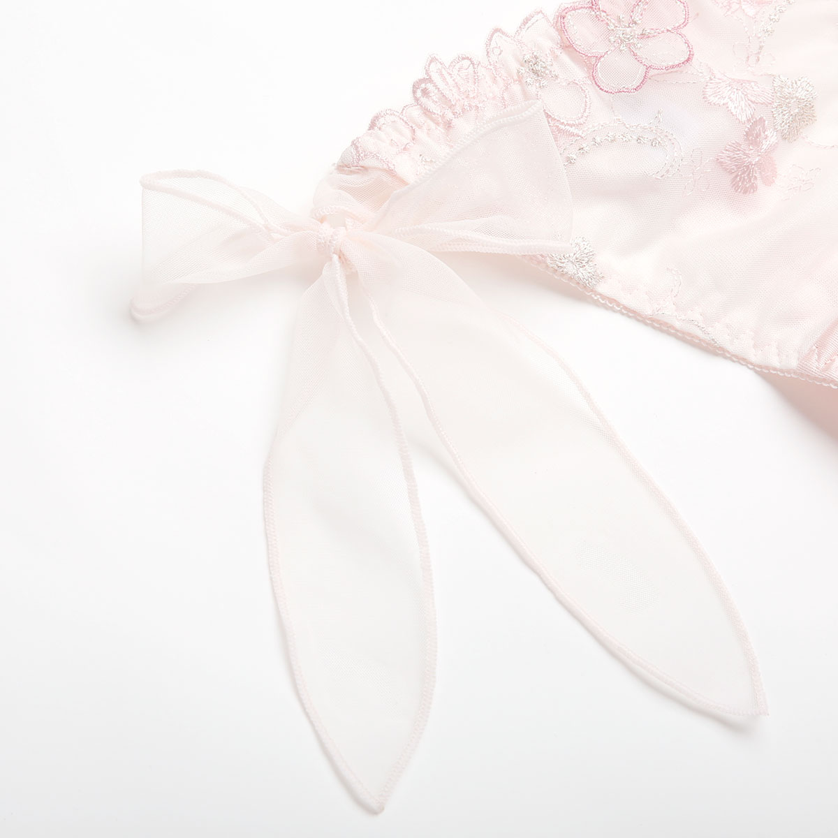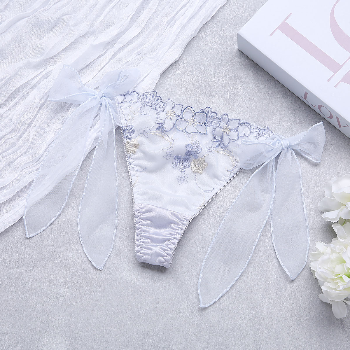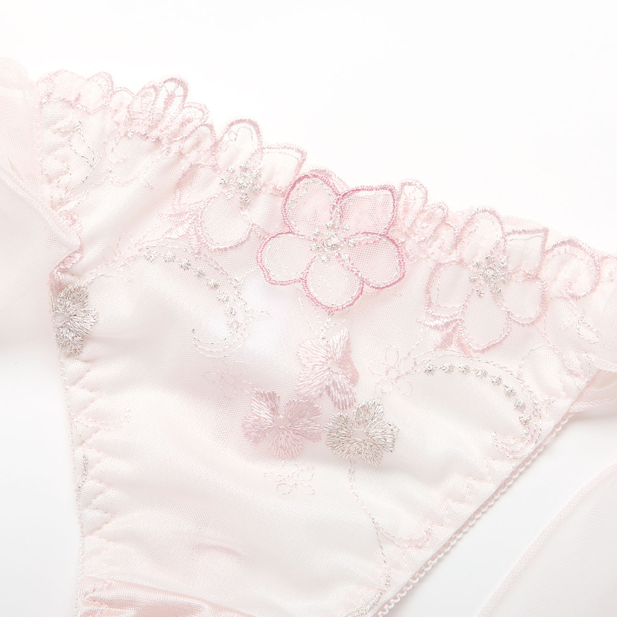 お花の刺繍レースがフェミニンなふんわりサイドリボンTバック