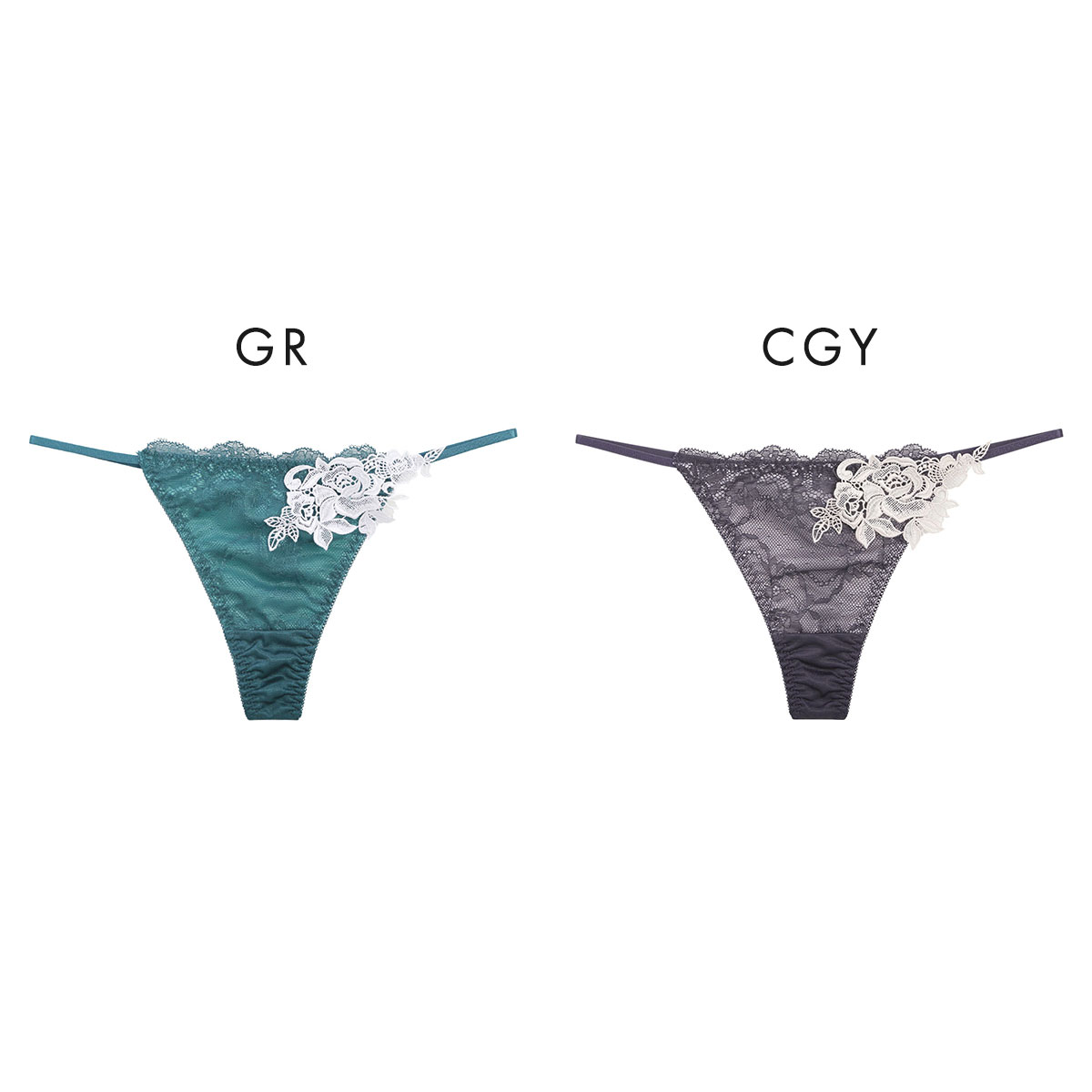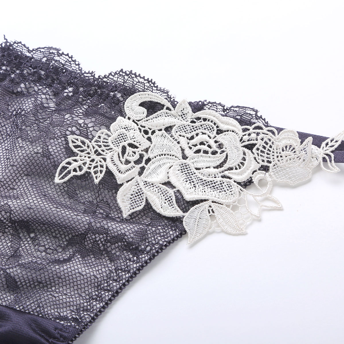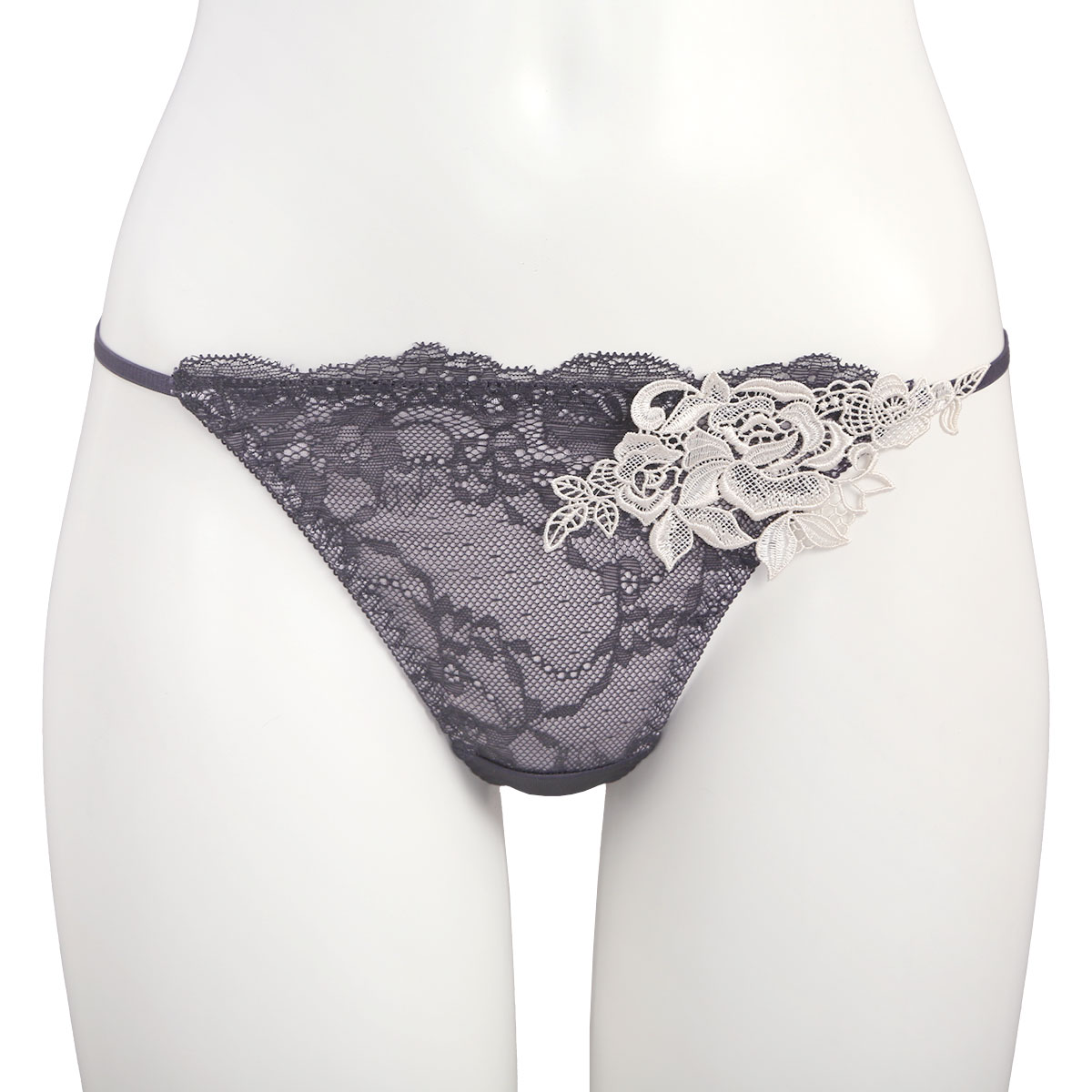 大胆な薔薇のレースアップリケが妖艶なサイドストリングTバック
