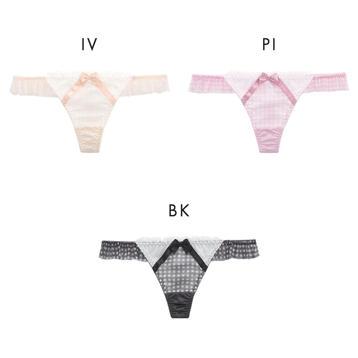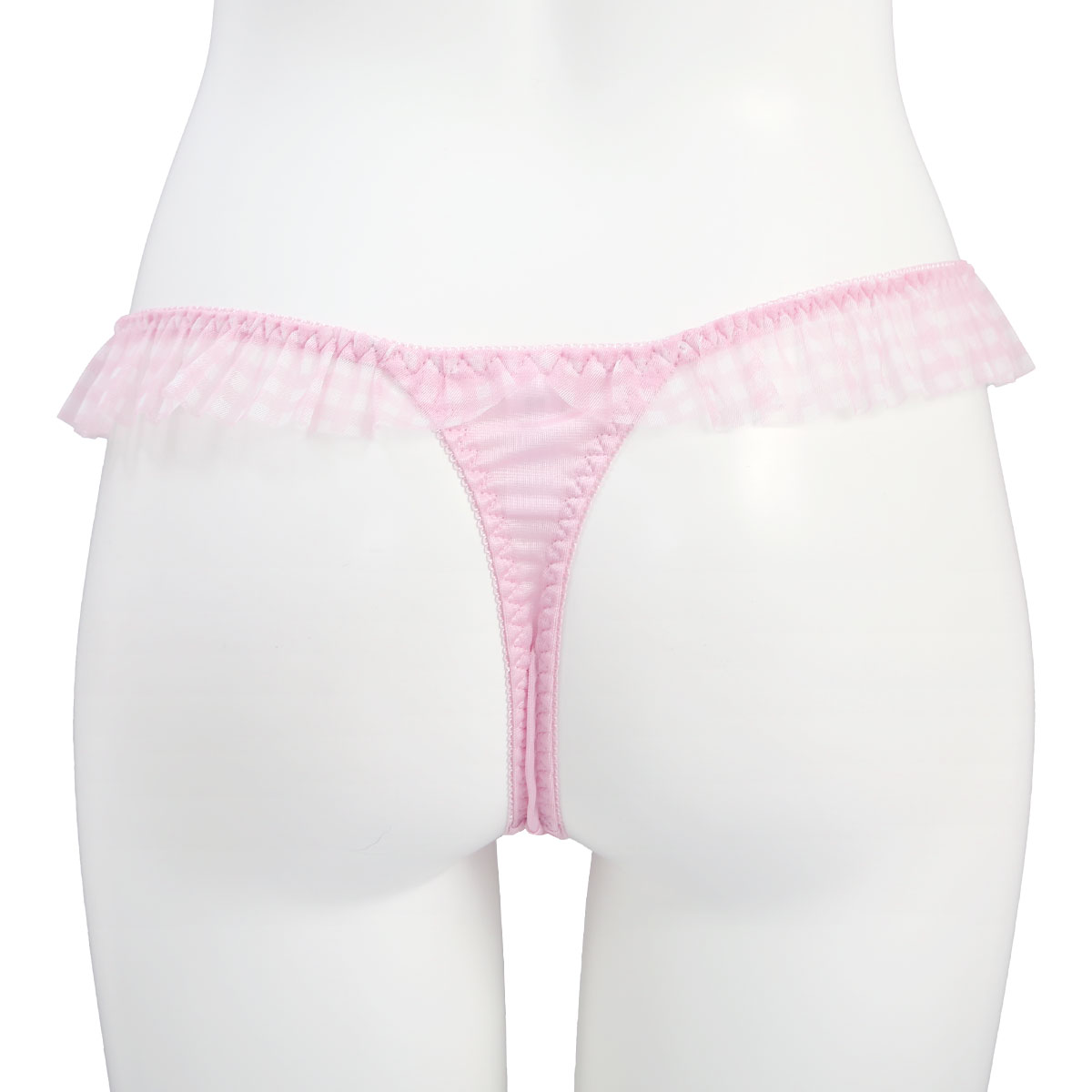 フリルとレースをあしらったギンガムチェック柄チュールのTバック。
