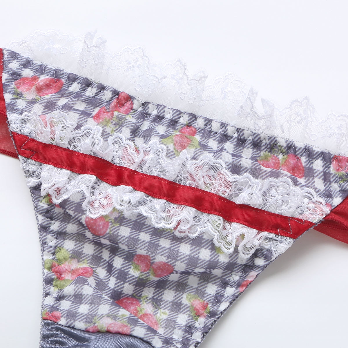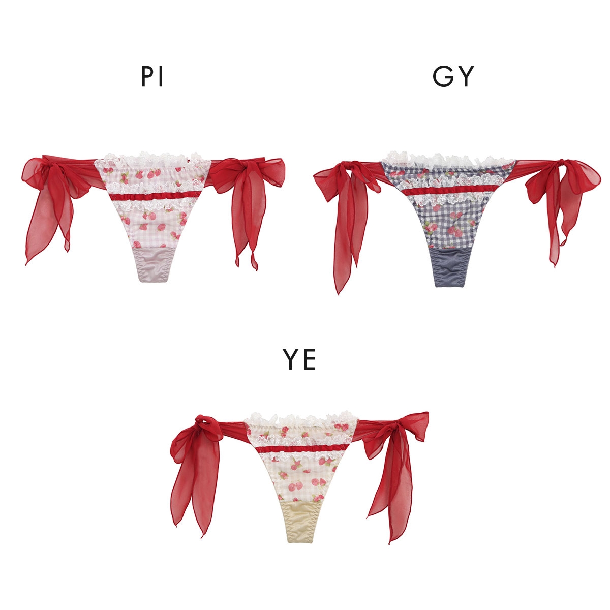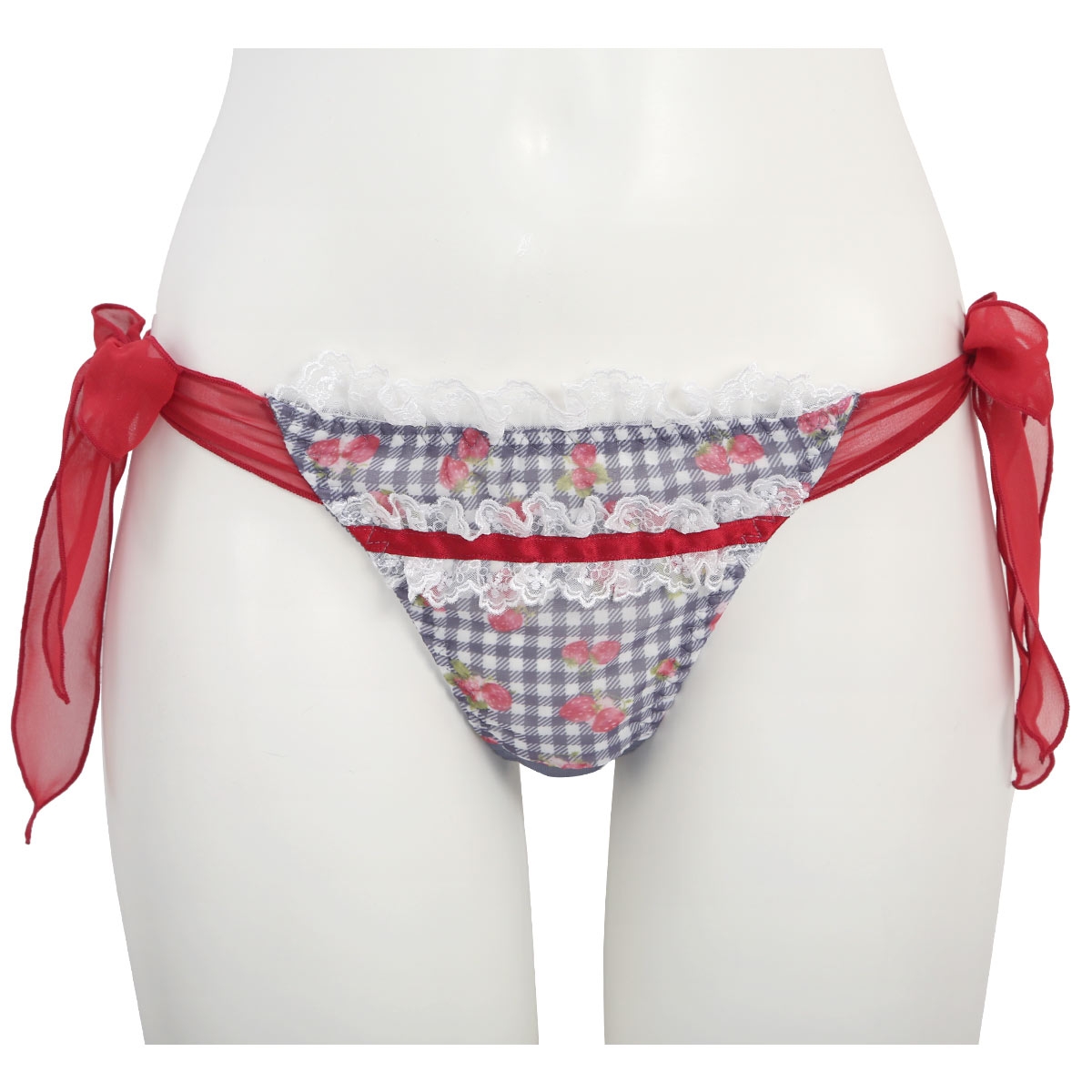 苺とチェック柄のシフォンがキュートなサイドリボンTバック