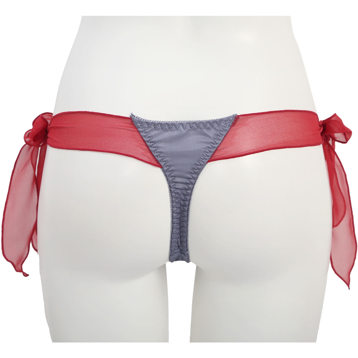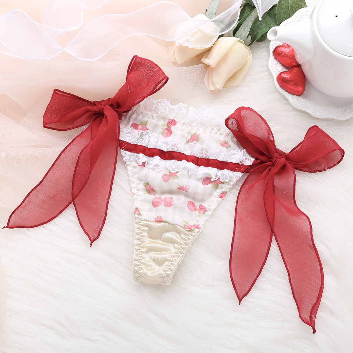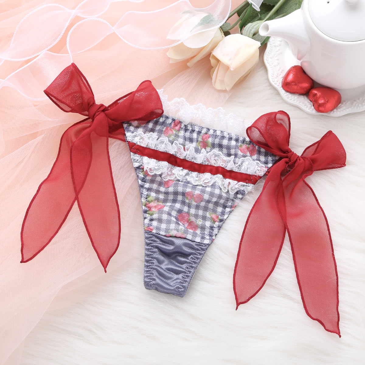 苺とチェック柄のシフォンがキュートなサイドリボンTバック