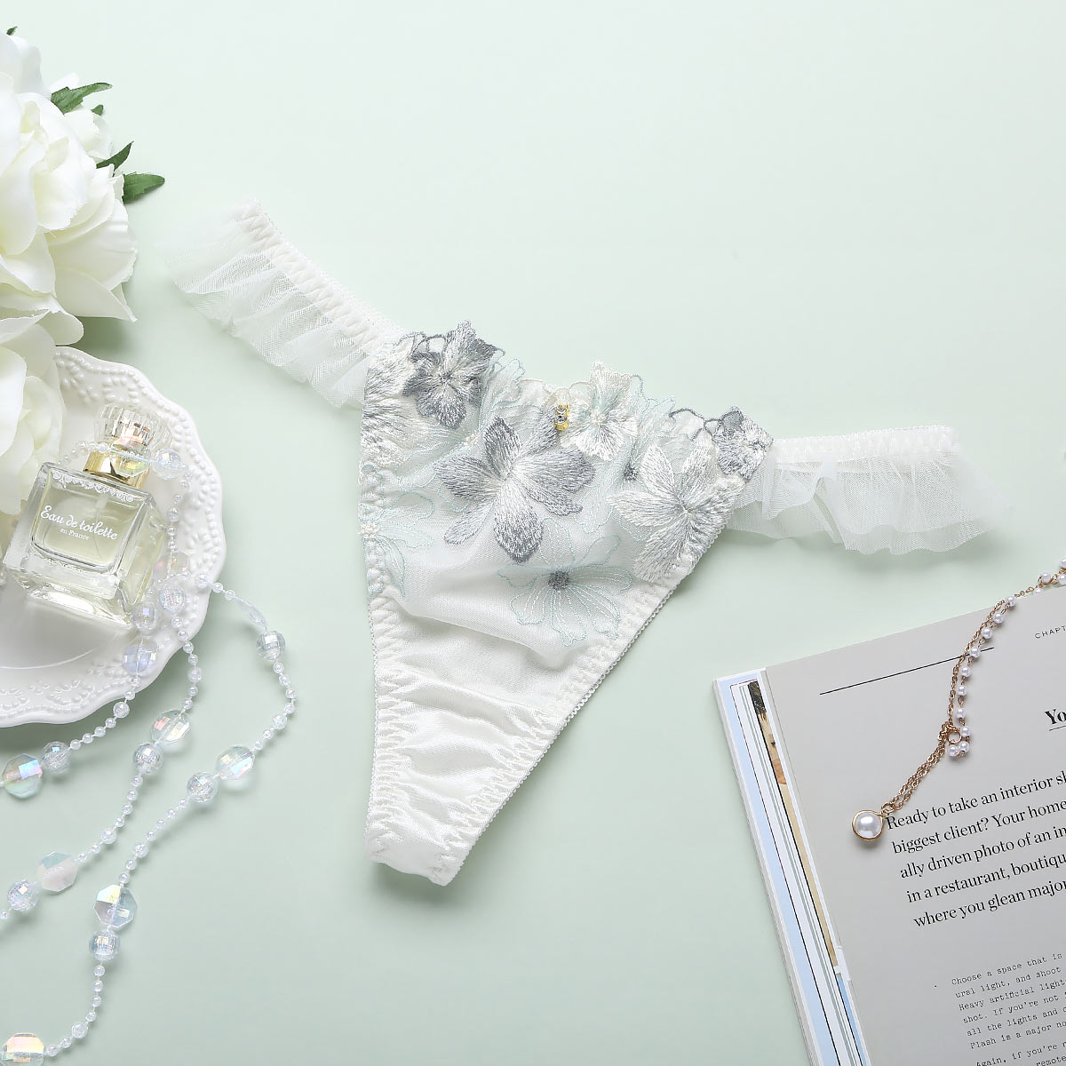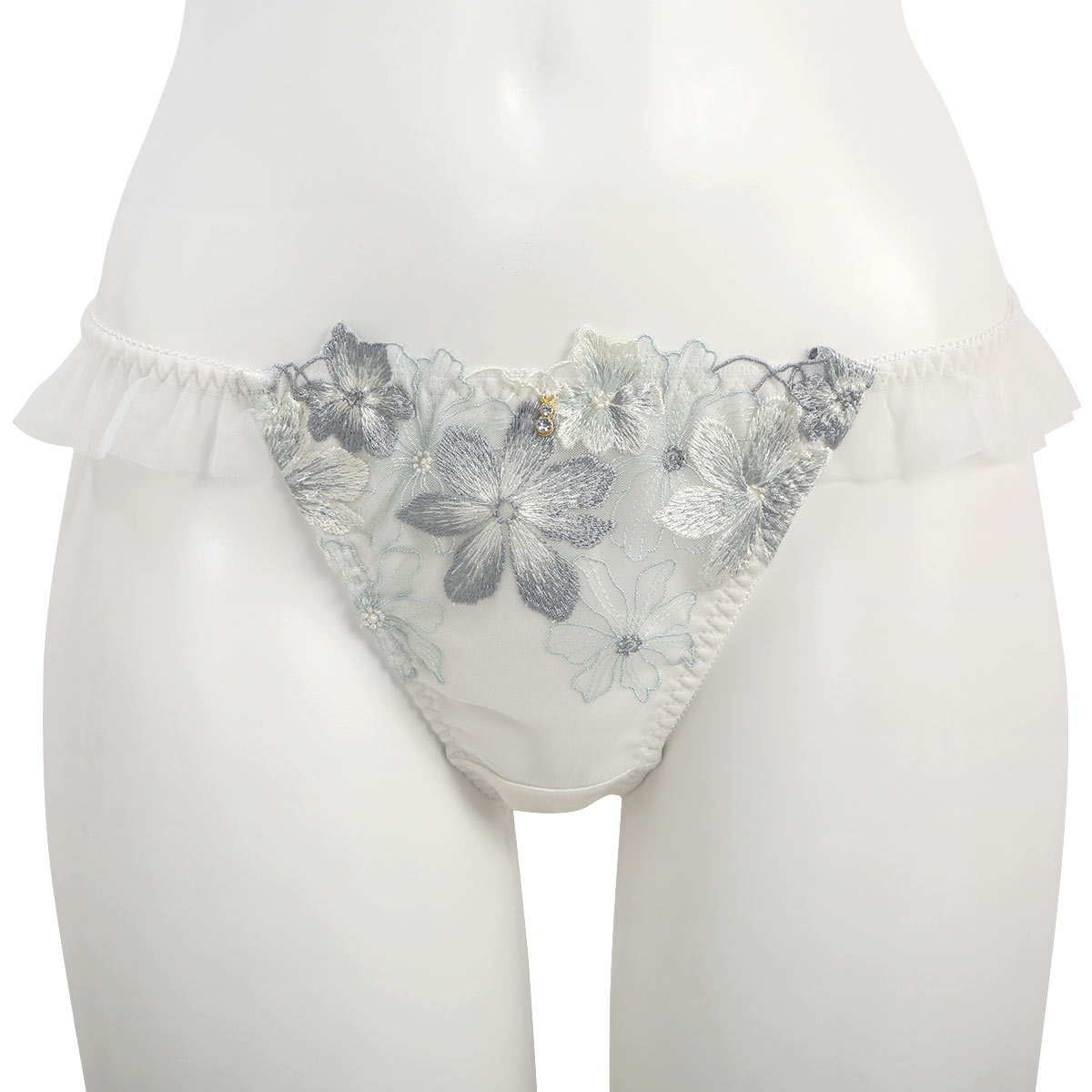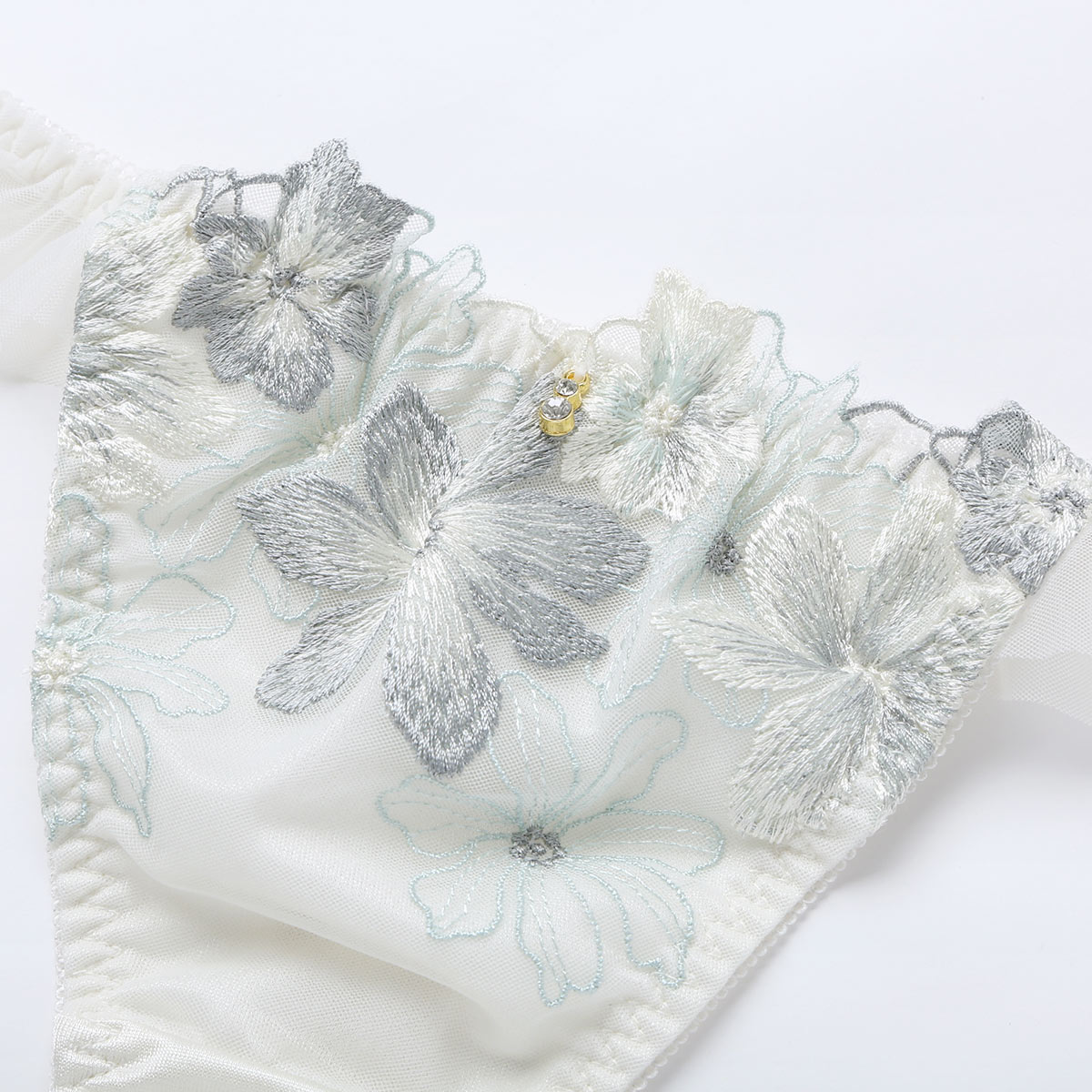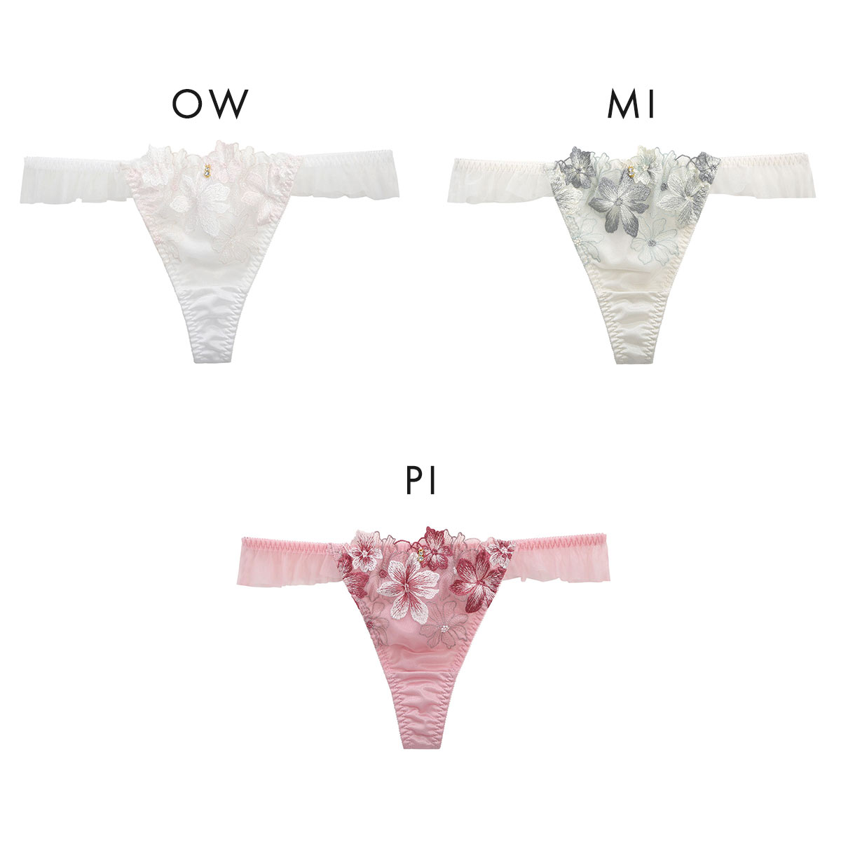 ガーベラ刺繍のレースにひらめくチュールフリルが可憐なTバック