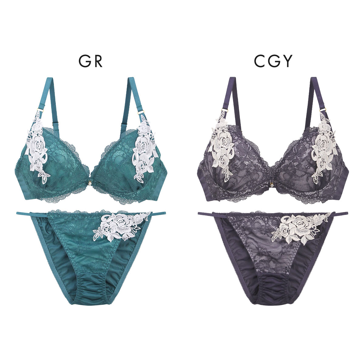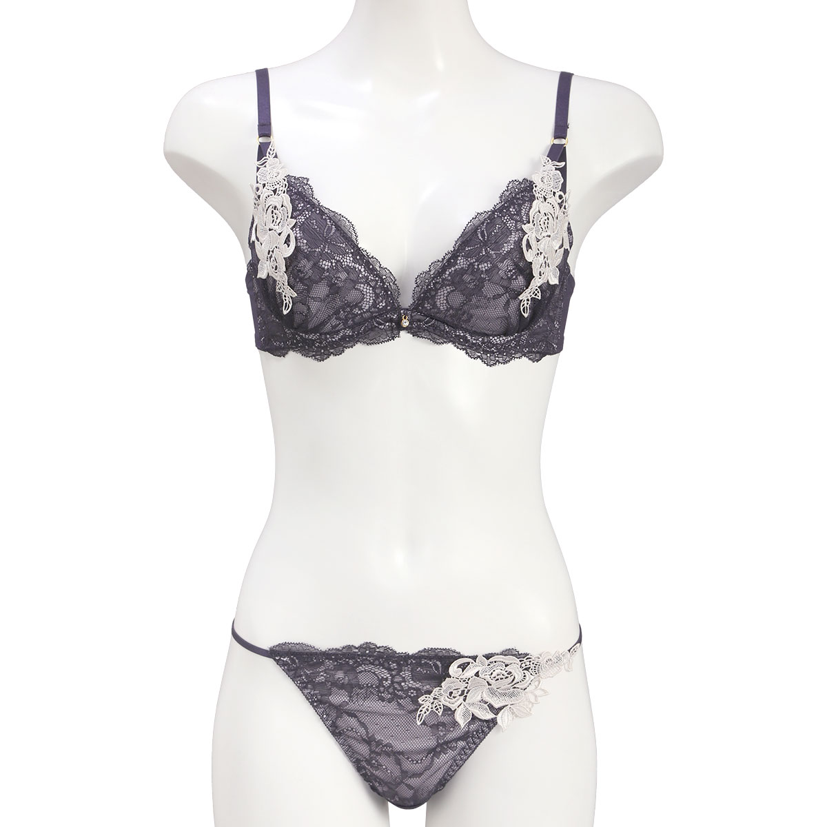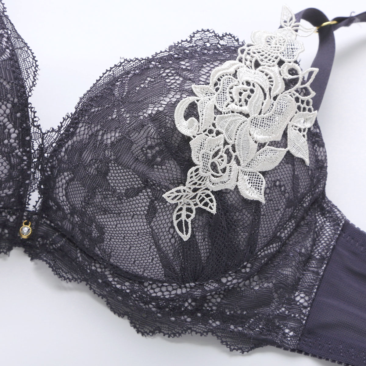 大胆な薔薇のレースアップリケ使いがセクシーなブラセット