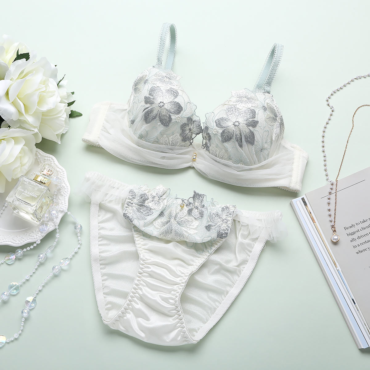 ガーベラ刺繍のレースに透け感のあるチュールが上品なブラセット