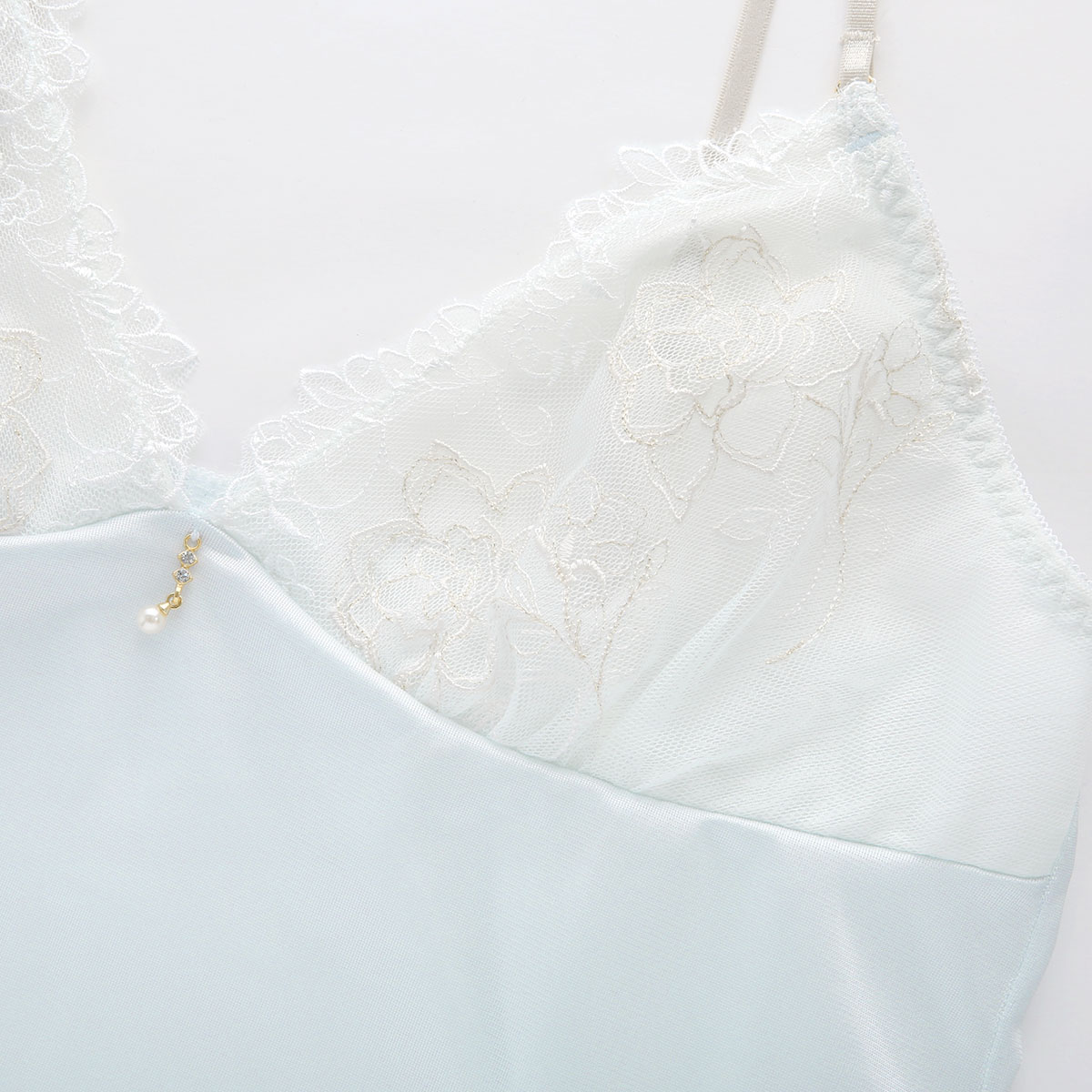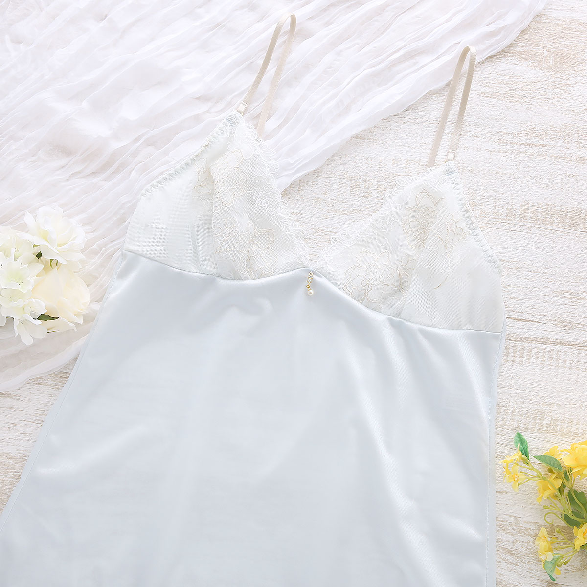 煌めくフラワー刺繍が軽やかなセクシーさを演出するスリップ