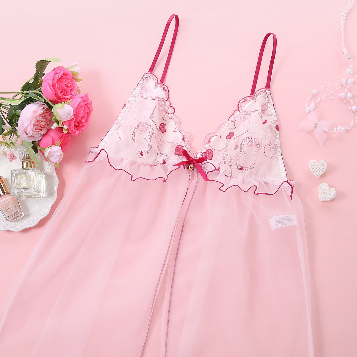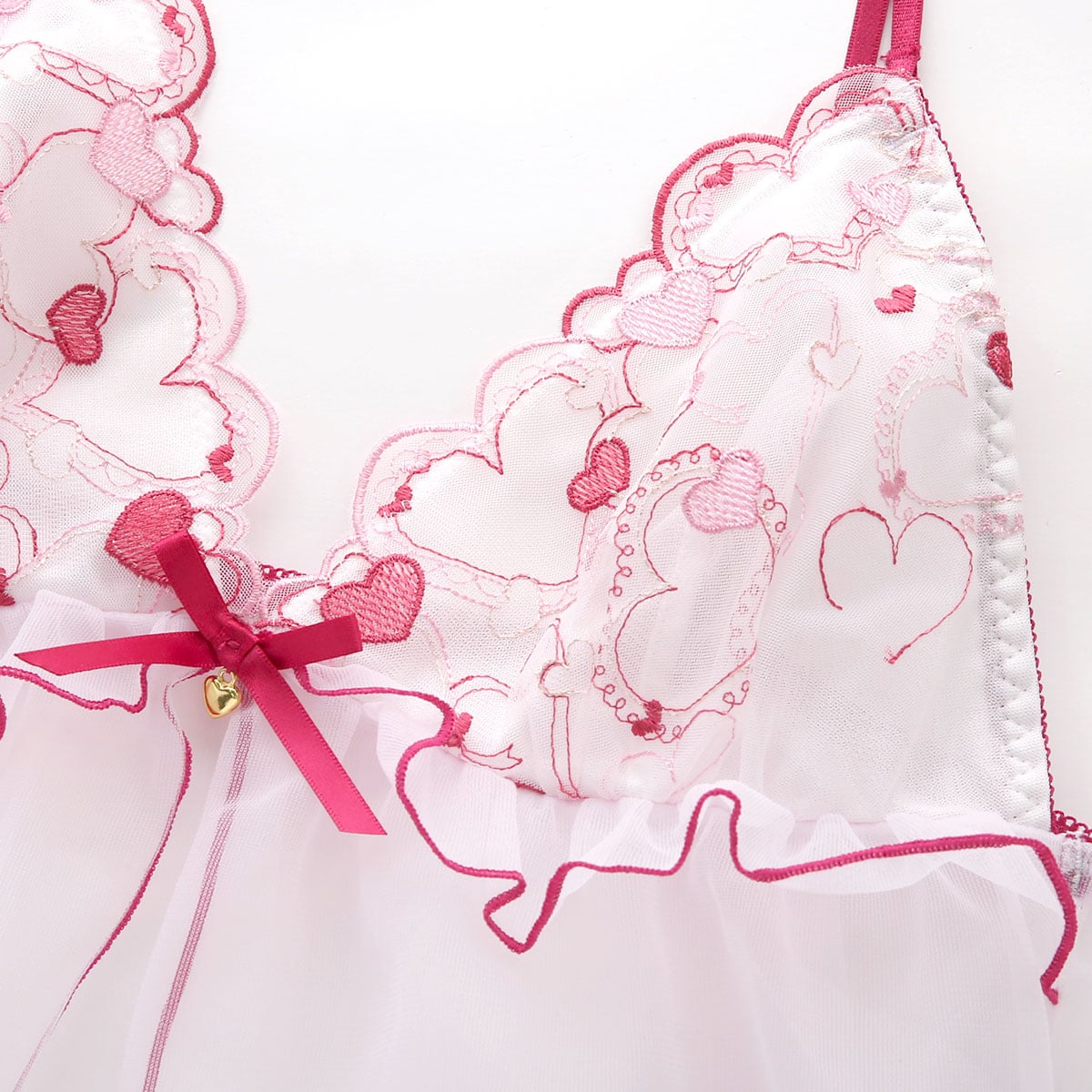 透け感がセクシー★スウィートなハート刺繍レースのベビードール