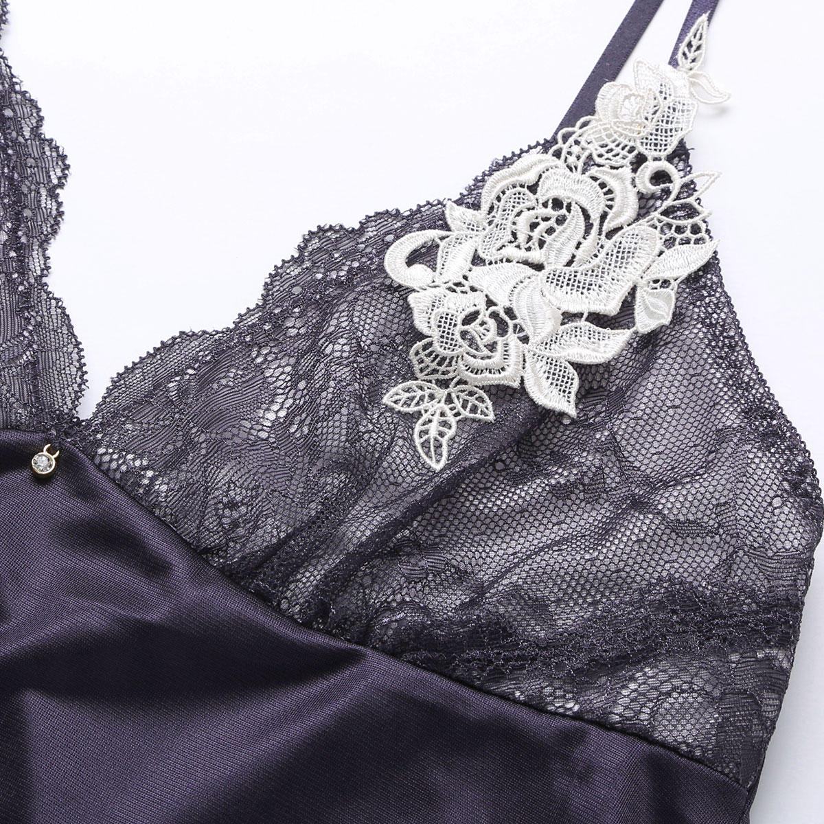 大胆な薔薇のレースアップリケ使いがセクシーなスリップ