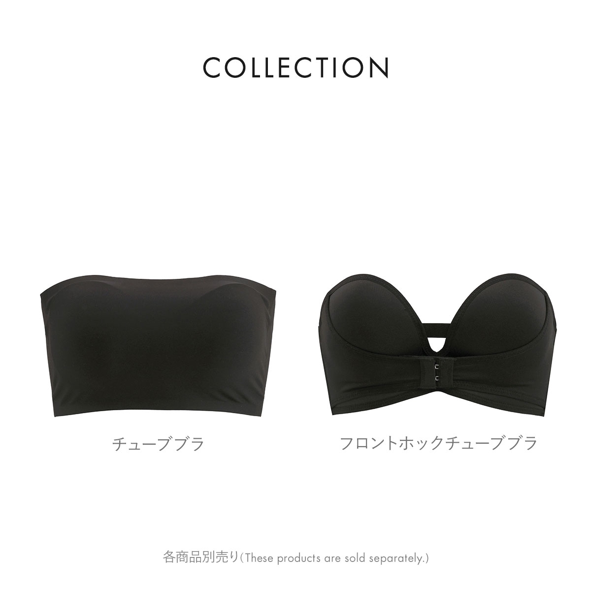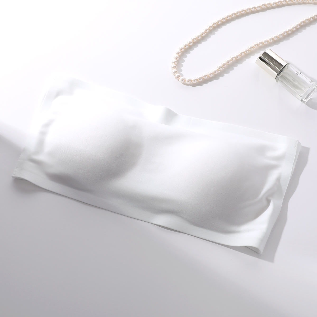 シンプルなデザインで洋服にひびきにくいチューブブラ。