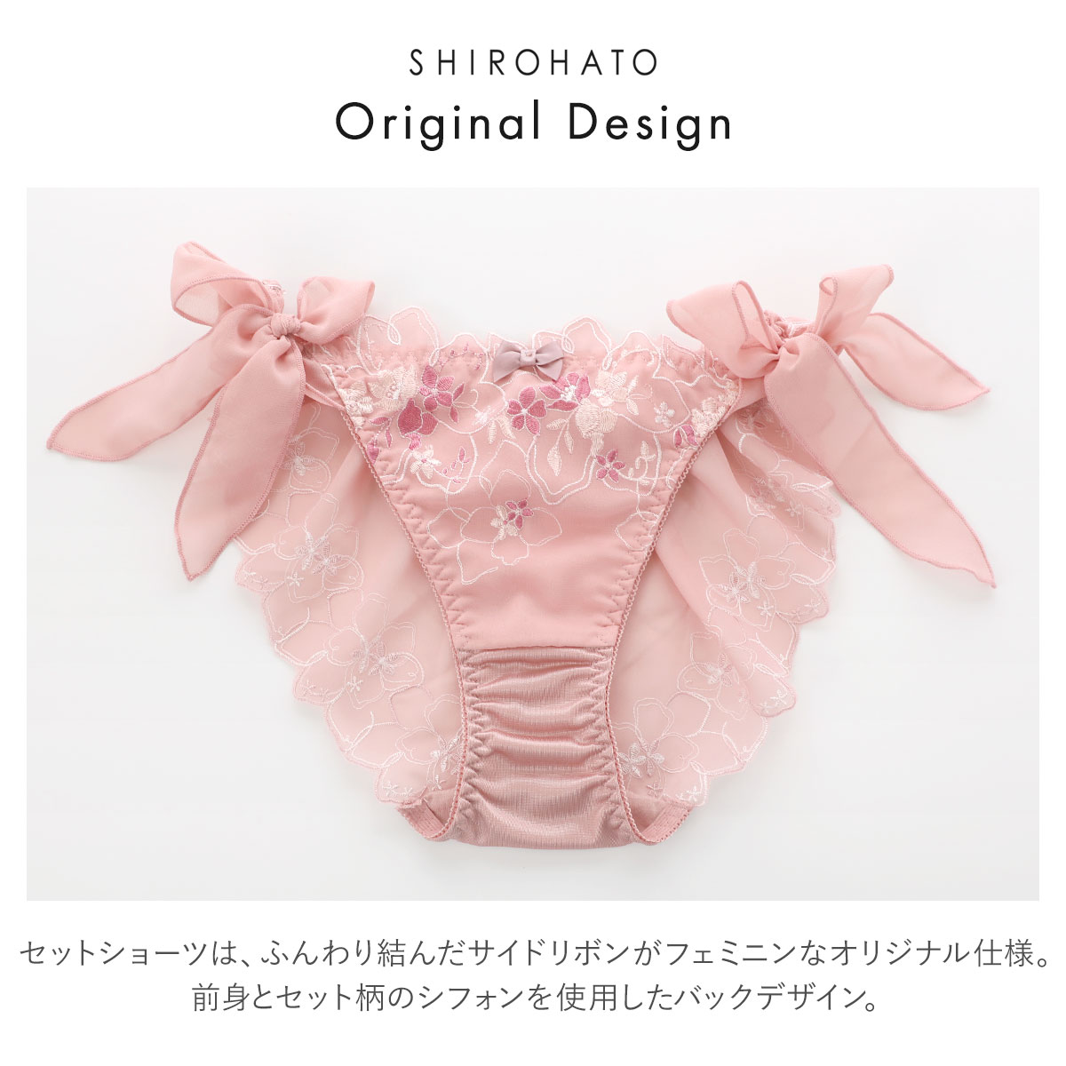 ココランジェ マルチキューティシフォン ブラジャー ショーツ セット SHIROHATO別注 谷間 サイドリボン バックレース COCO Linge