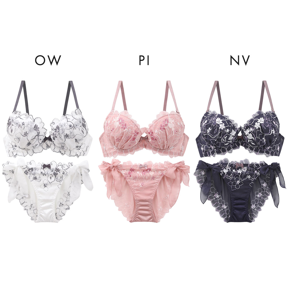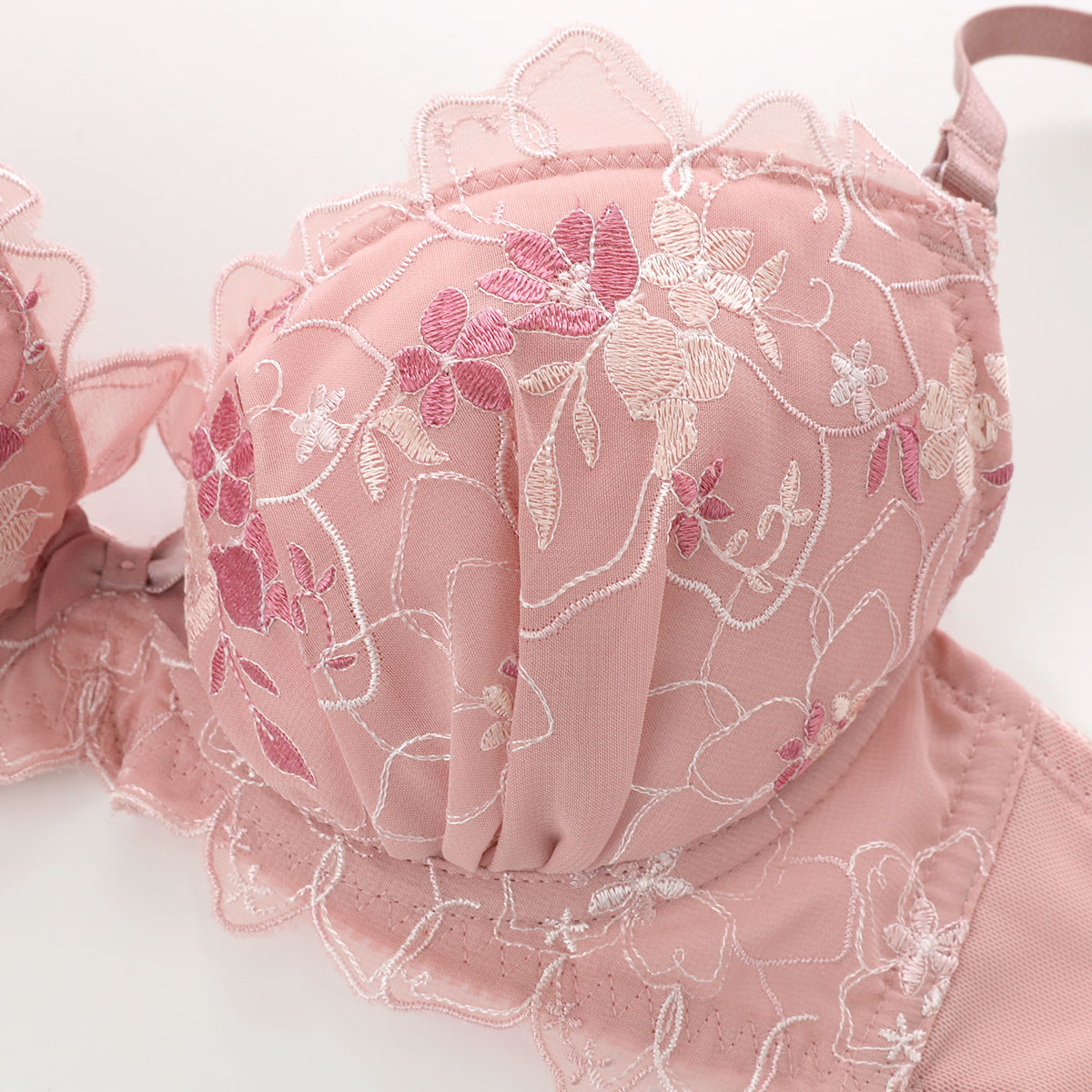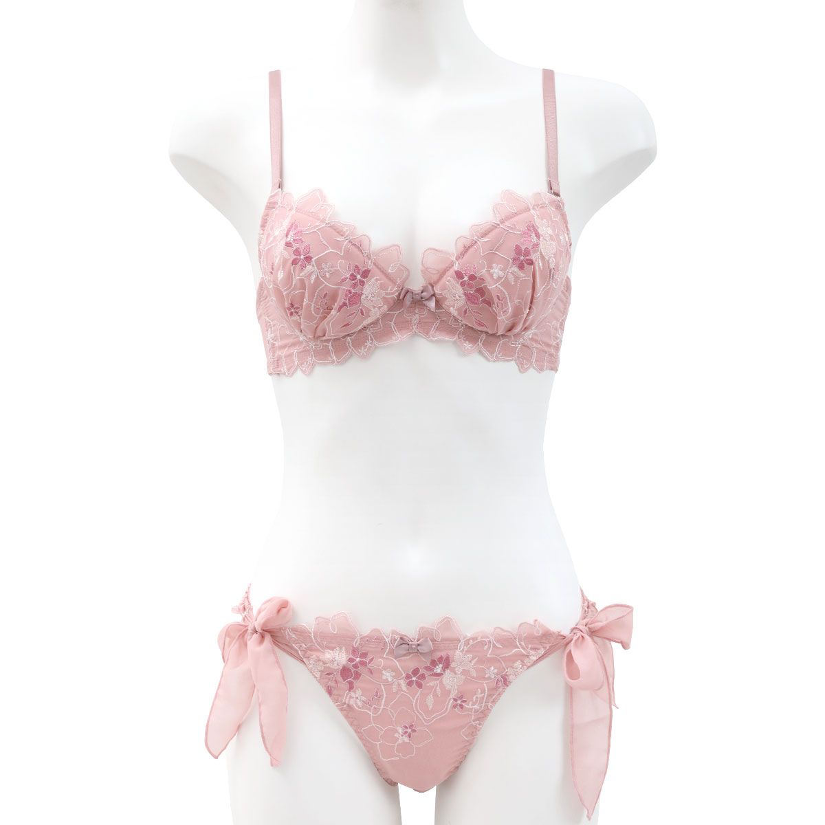 マルチ糸で表現した小花刺繍が可愛らしいシフォンブラセット