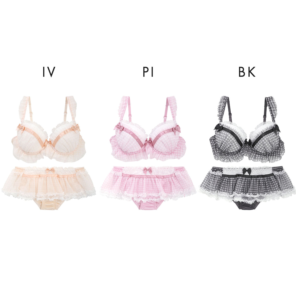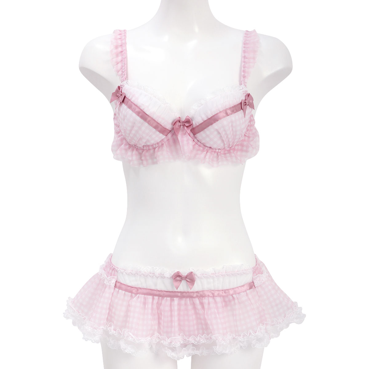 たっぷりフリルのチェック柄ブラ&ふんわりスカートショーツ