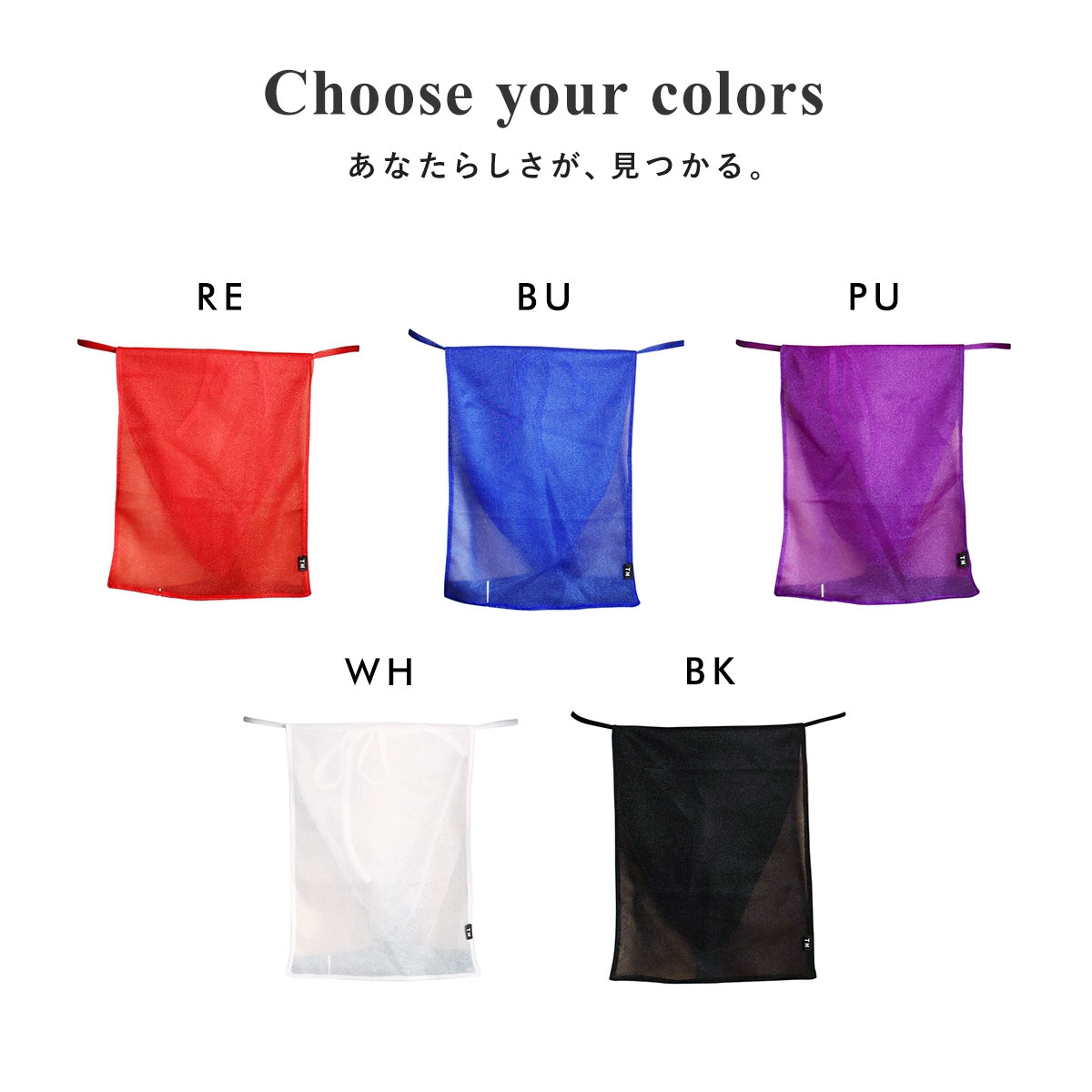 カラーRE-レッド、BU-ブルー、PU-パープル、WH-ホワイト、BK-ブラック