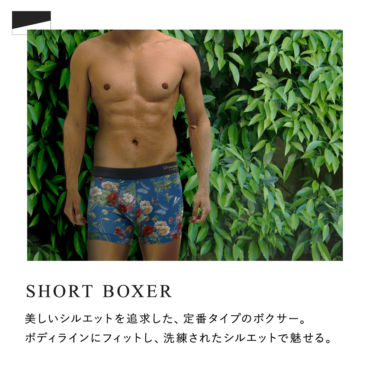 ほどよいはきこみ丈のショートボクサーパンツ。自由自在にやわらかく伸縮するので、動きに合わせてボディに心地よくフィット。「第2の皮膚」と呼ぶに相応しい、しっとりとなめらかな肌ざわりです。フィット感のある薄い素材のため、アウターにひびきにくく、タイトなボトムもすっきりとしたシルエットに。