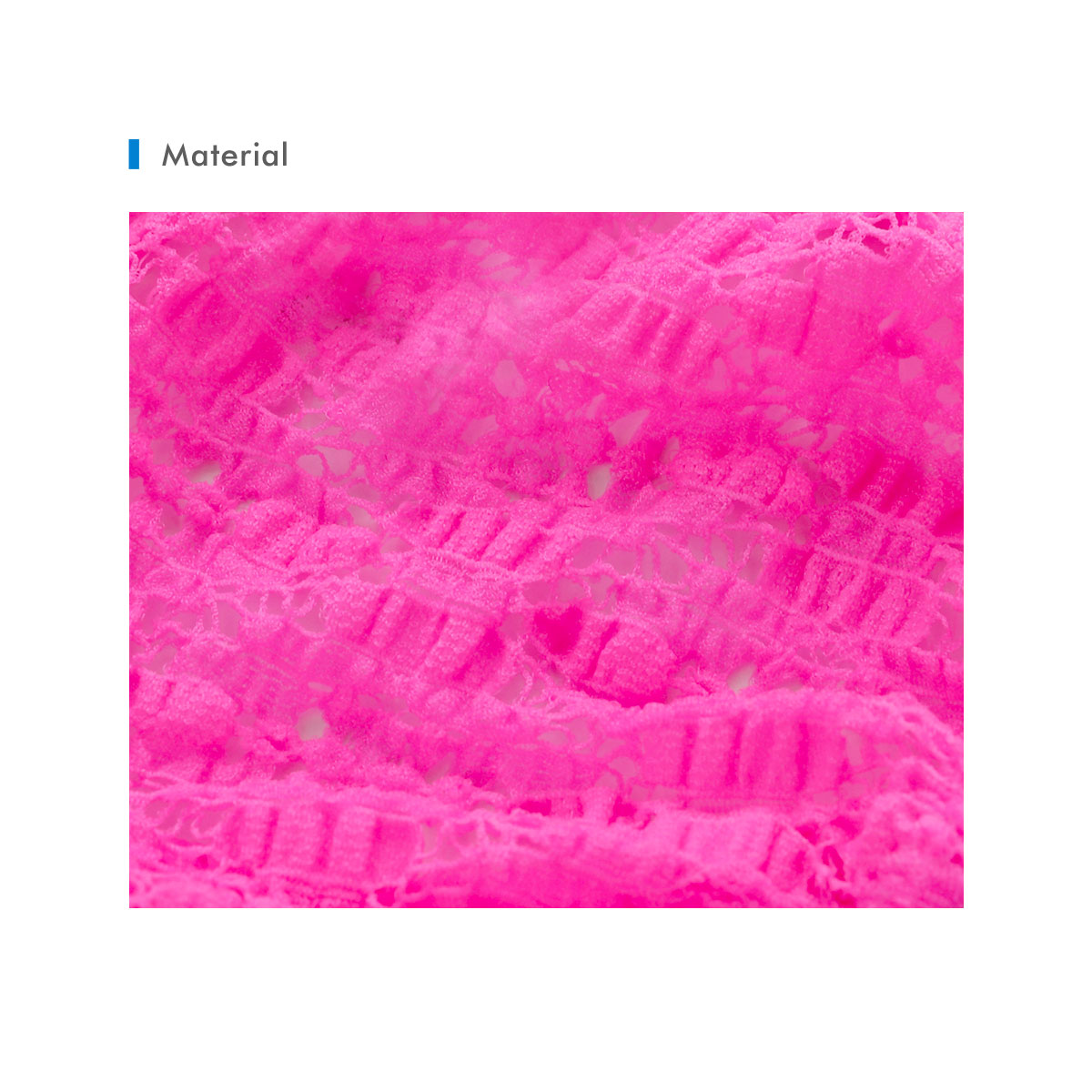 柔らかくストレッチ性に優れたウーリーレースを使用した、シャープなカッティングのハイレグスタイルハーフバックビキニです。