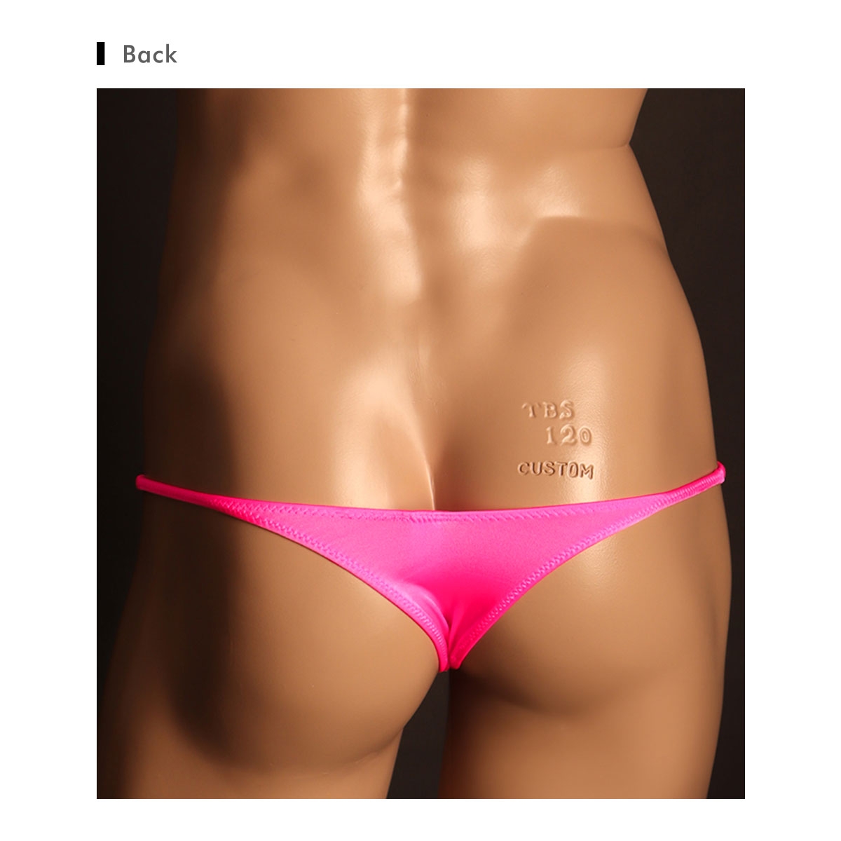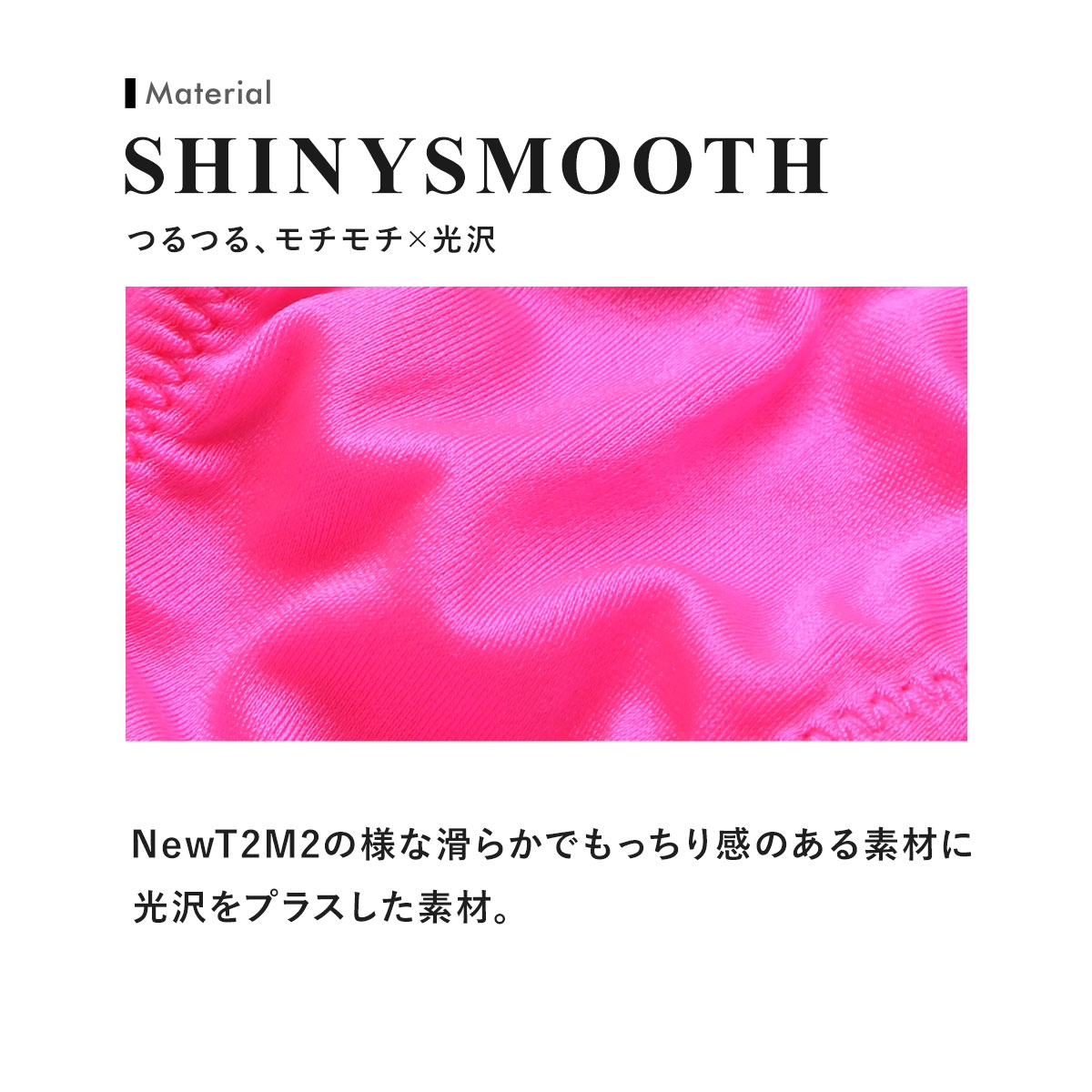 シャイニースムース(NewT2M2の様な滑らかでもっちり感のある素材に光沢をプラス)を使用したハギナシシャープシリーズです!柔らかいストレッチ素材ならではのフィット感を股下部分のハギを無くしてありますので存分に味わっていただけます。極上のリオバックです。サイドも極細仕様に仕上げています。