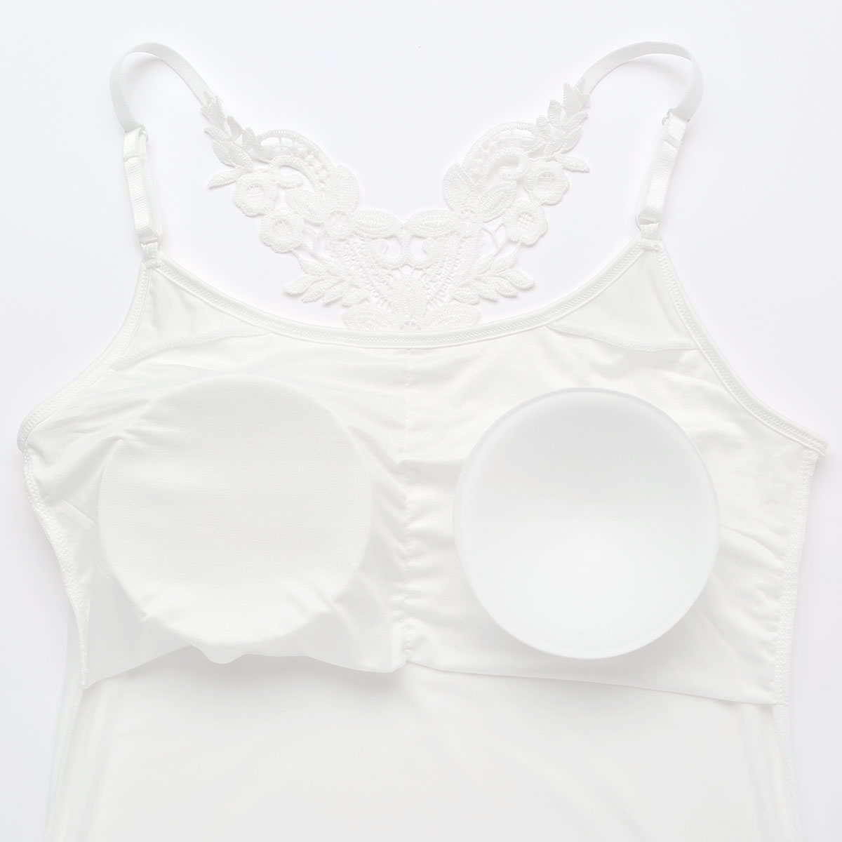 ブラカップ付きなので、1枚で着用ができ、肩や背中が開いた肌見せファッションとの相性バッチリ!カップは取り外し可能です。
