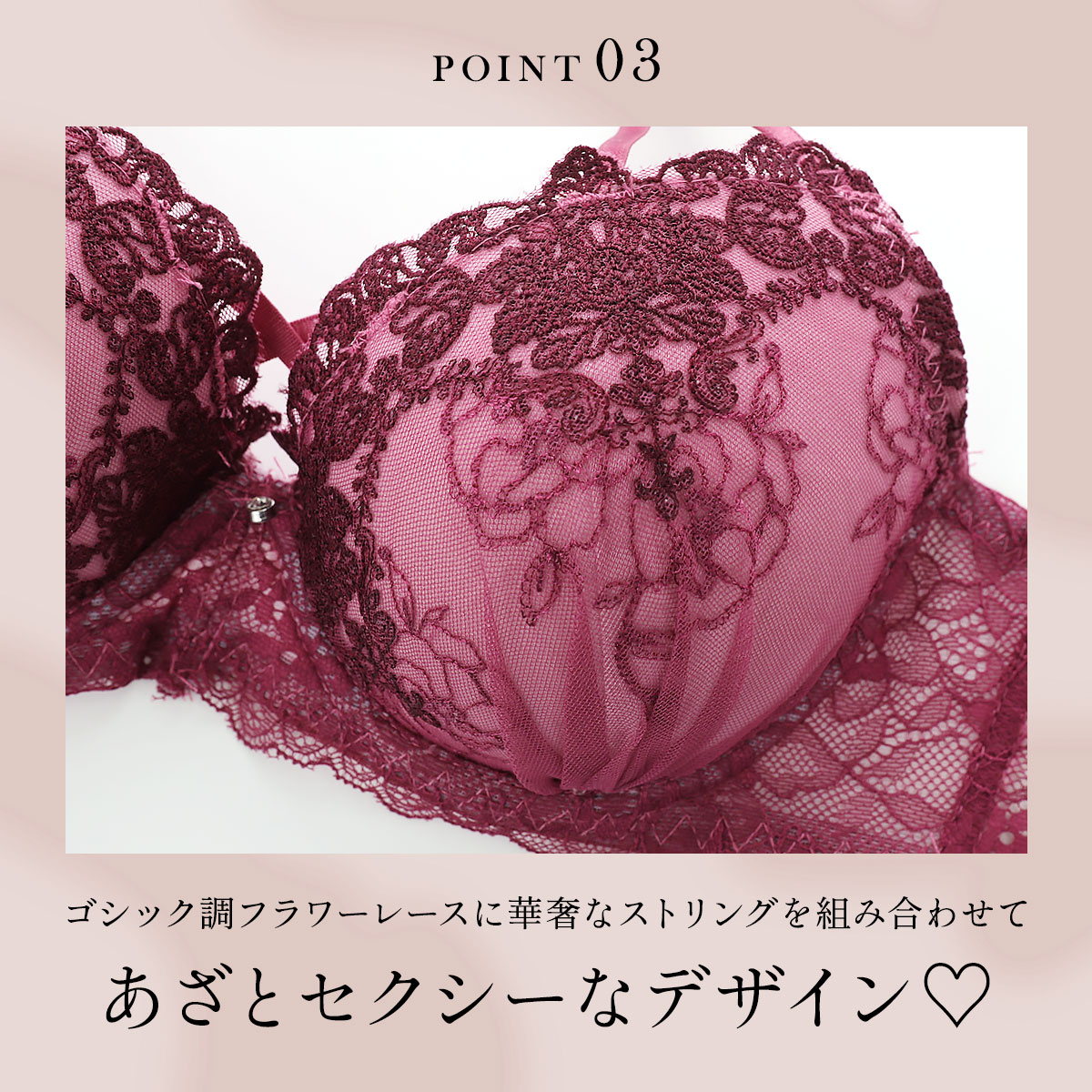 ラブジェリー ゴシックフラワーコード ブラセット EF 大きいサイズ グラマー 盛り胸 Wパッド 厚盛り 谷間ブラ 脇寄せ Love gerie(WI-ワイン-E70-M)