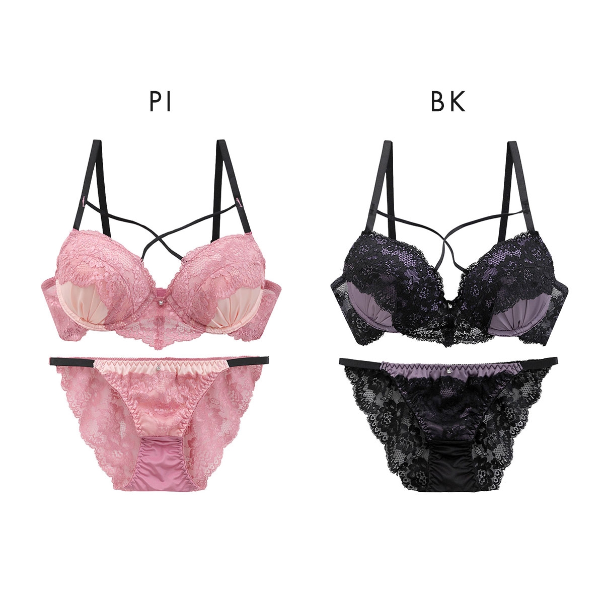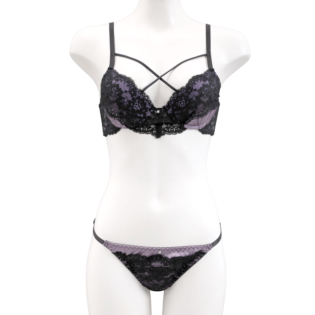 Wパッドでふっくら谷間♪胸元にクロスに渡るコードがセクシーな大人ブラセット!
