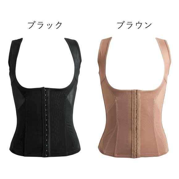 ボディシェイパー コルセット バストアップ インナー 補正下着 補整下着 パワーネット使用(ブラウン-M)