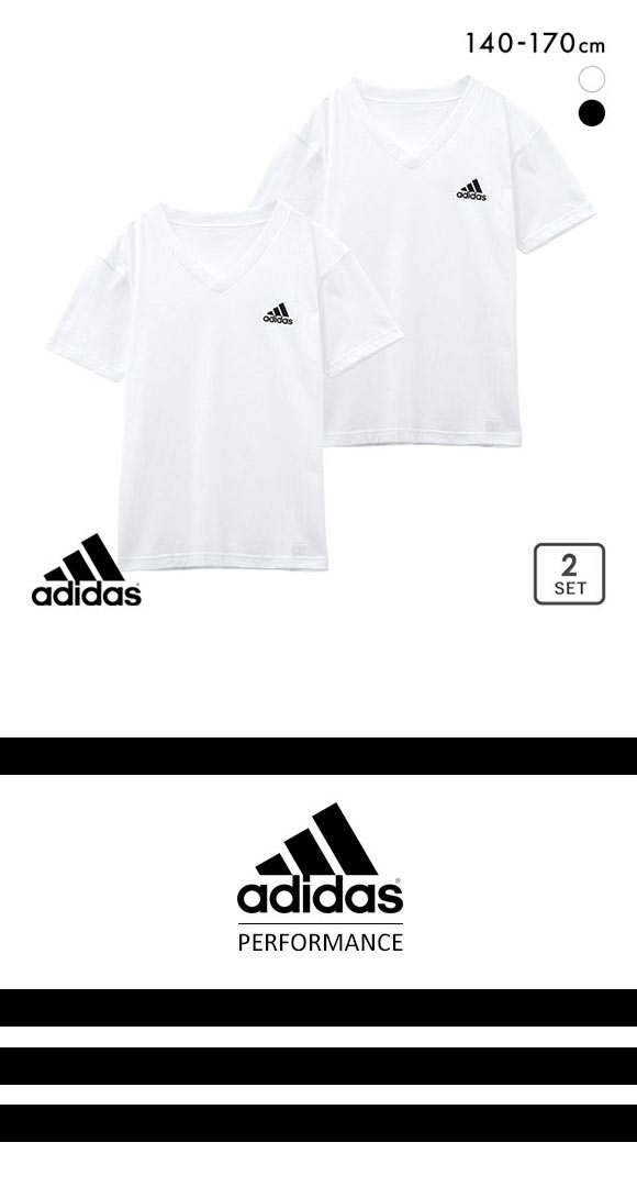 アディダス adidas 2P 半袖 Tシャツ 2枚組 Vネック インナー ロゴ キッズ ジュニア 男の子