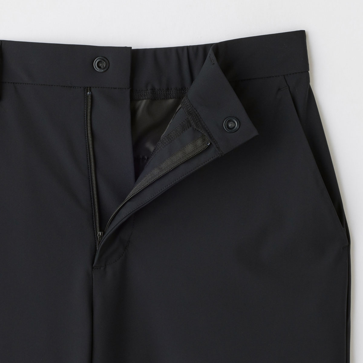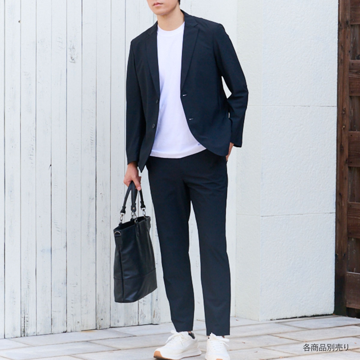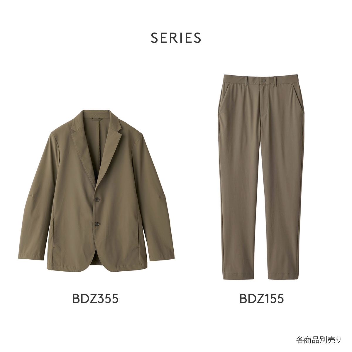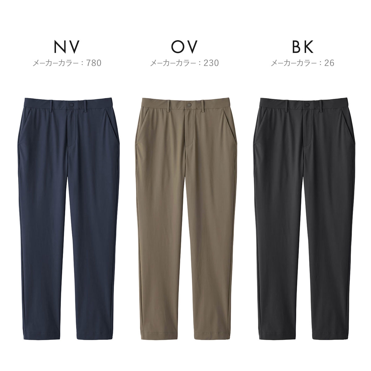 裾にかけて絞られたシルエットで、スッキリスマートな着こなしが可能に。縦にも横にも伸縮性のある2WAYナイロンストレッチ素材を使用。軽くて速乾性にも優れ、水洗いができるのでお家でのお手入れも簡単!セットアップ可能なジャケット(69BDZ355)と合わせてスーツとして着回しできます。ビジネスシーンやリモートワークはもちろん、カジュアルにも適応する便利なアイテムです。