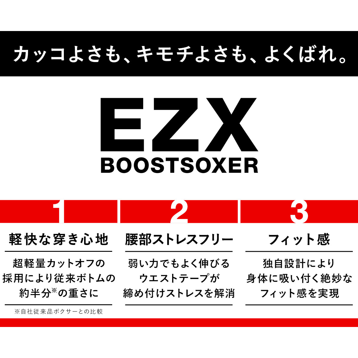 超軽量カットオフを採用。従来のボトムの約半分の重さに。※グンゼ従来品ボクサーとの比較。