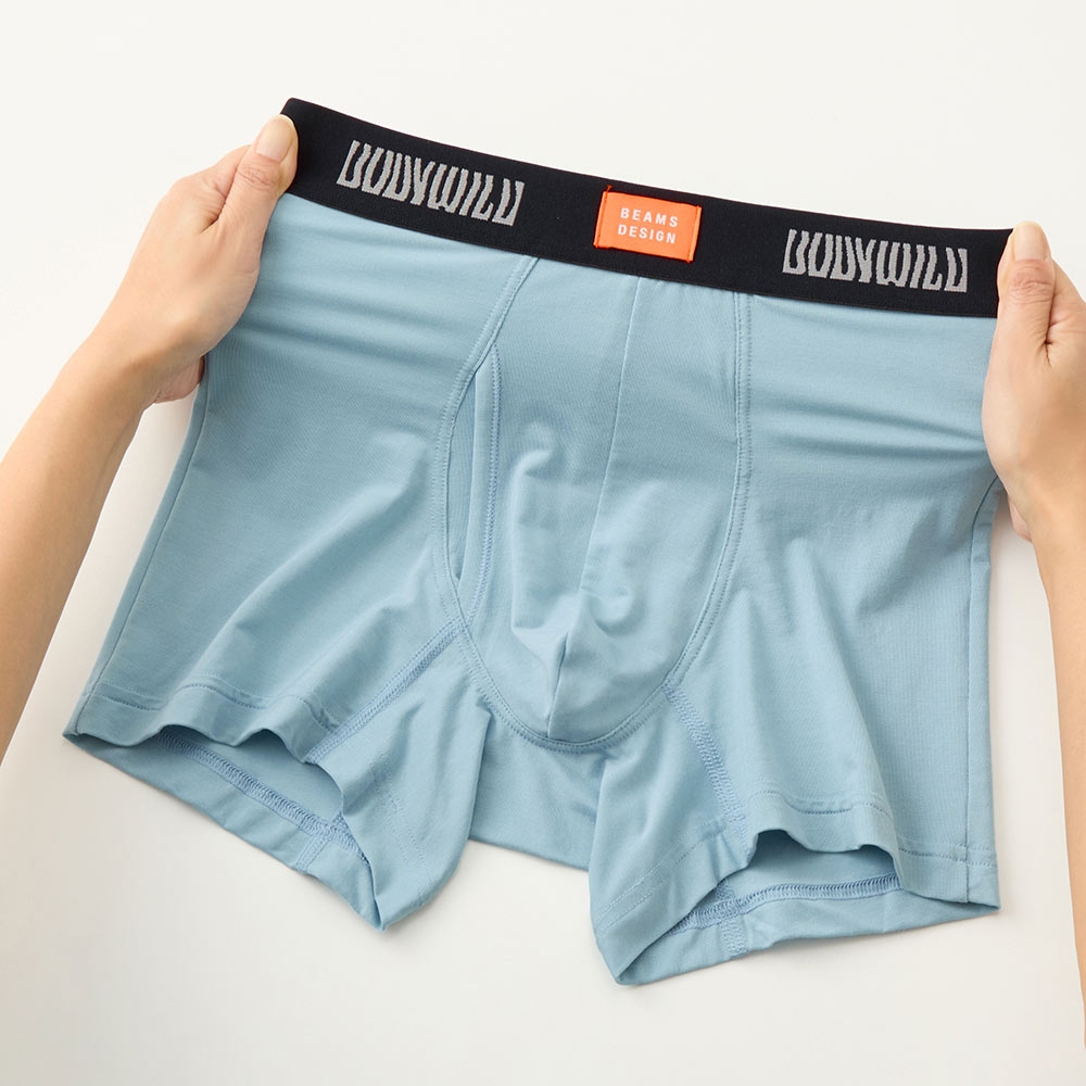 BEAMSのイメージカラーでもあるオレンジブランドタグをウエストゴム中央にあしらった、感度の高いデザインのボクサーパンツです。ボディには大注目の吸放湿テクノロジー、アセドロンを搭載。ムレを軽減し快適にご着用いただけます。