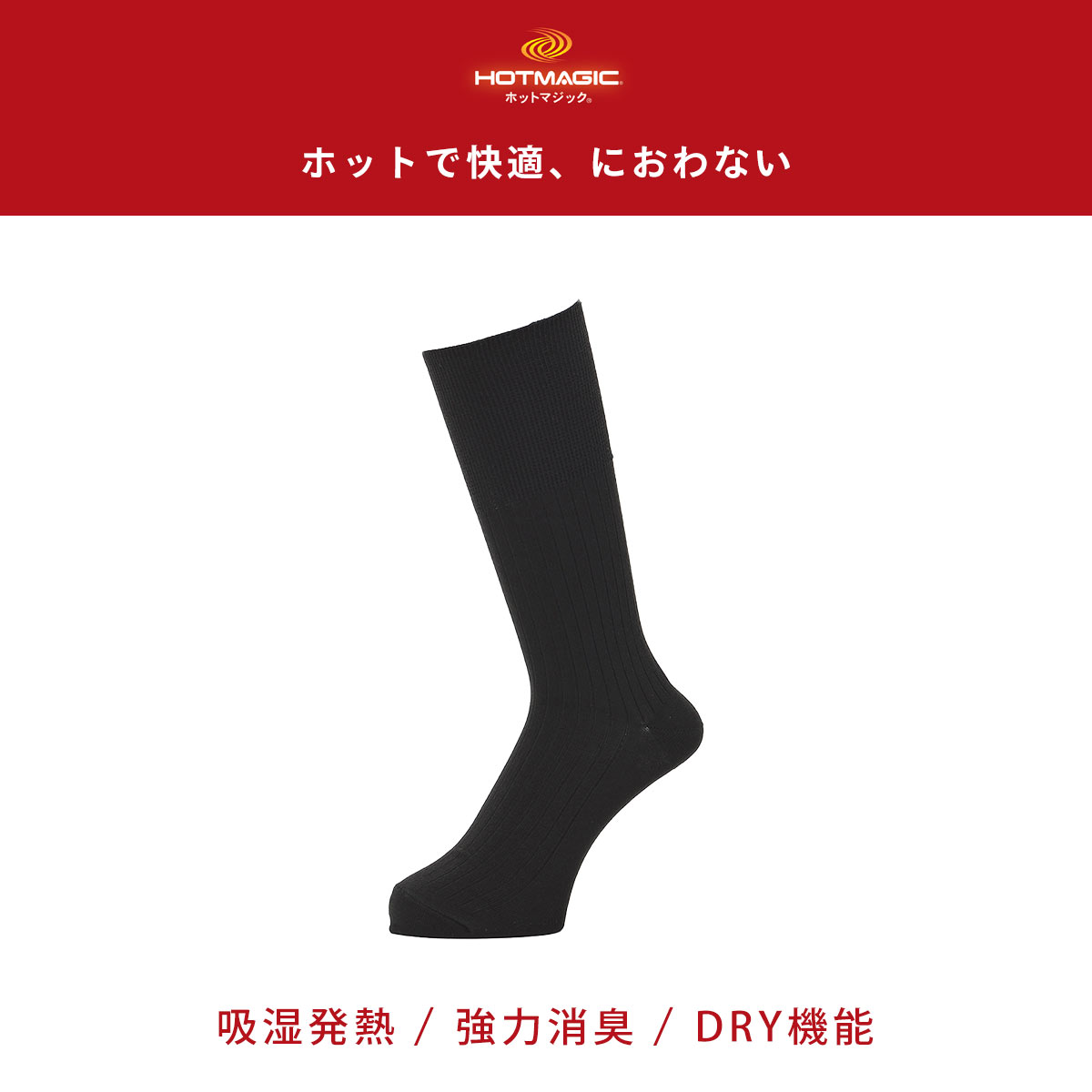 吸湿発熱素材を使用したホットなソックス。24時間臭わない強力消臭+DRY機能を併せ持ち、暑すぎるシチュエーションでも蒸れずに臭わせない優れモノです。はき口はソフト口ゴムで跡もつきにくく、やさしいはき心地に。