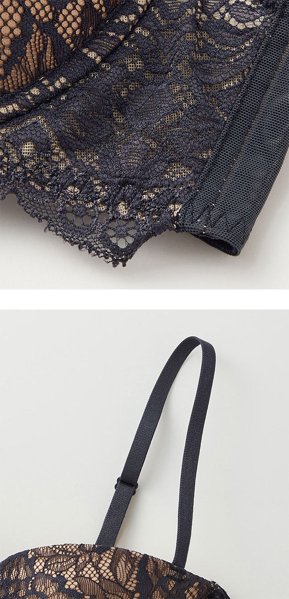 ふわふわマシュマロのような下厚カップ、バストをきれいにボリュームアップします。「存在感0ワイヤー」はワイヤレスのような着けごこち。らくちんでもしっかりバストアップして、デコルテのふっくら魅せを叶えます。