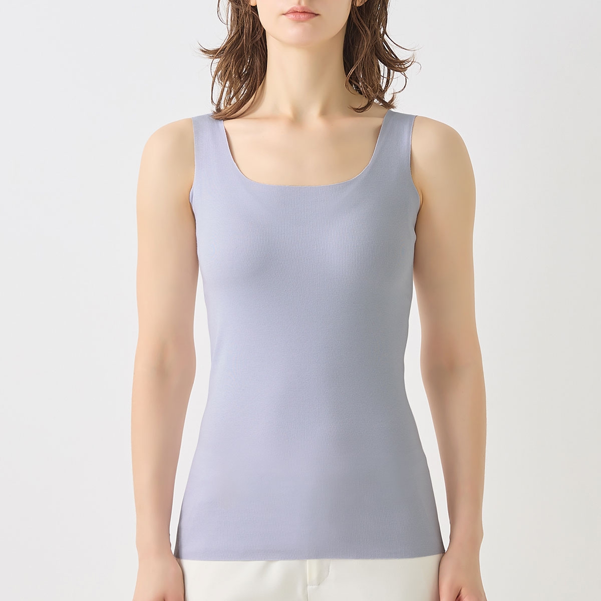 オーガニックがつくる立体美。お肌へのやさしさと着心地を追求したブランド、Fitte(フィッテ)の肌側オーガニックコットン100% 汗取り付きタンクトップです。