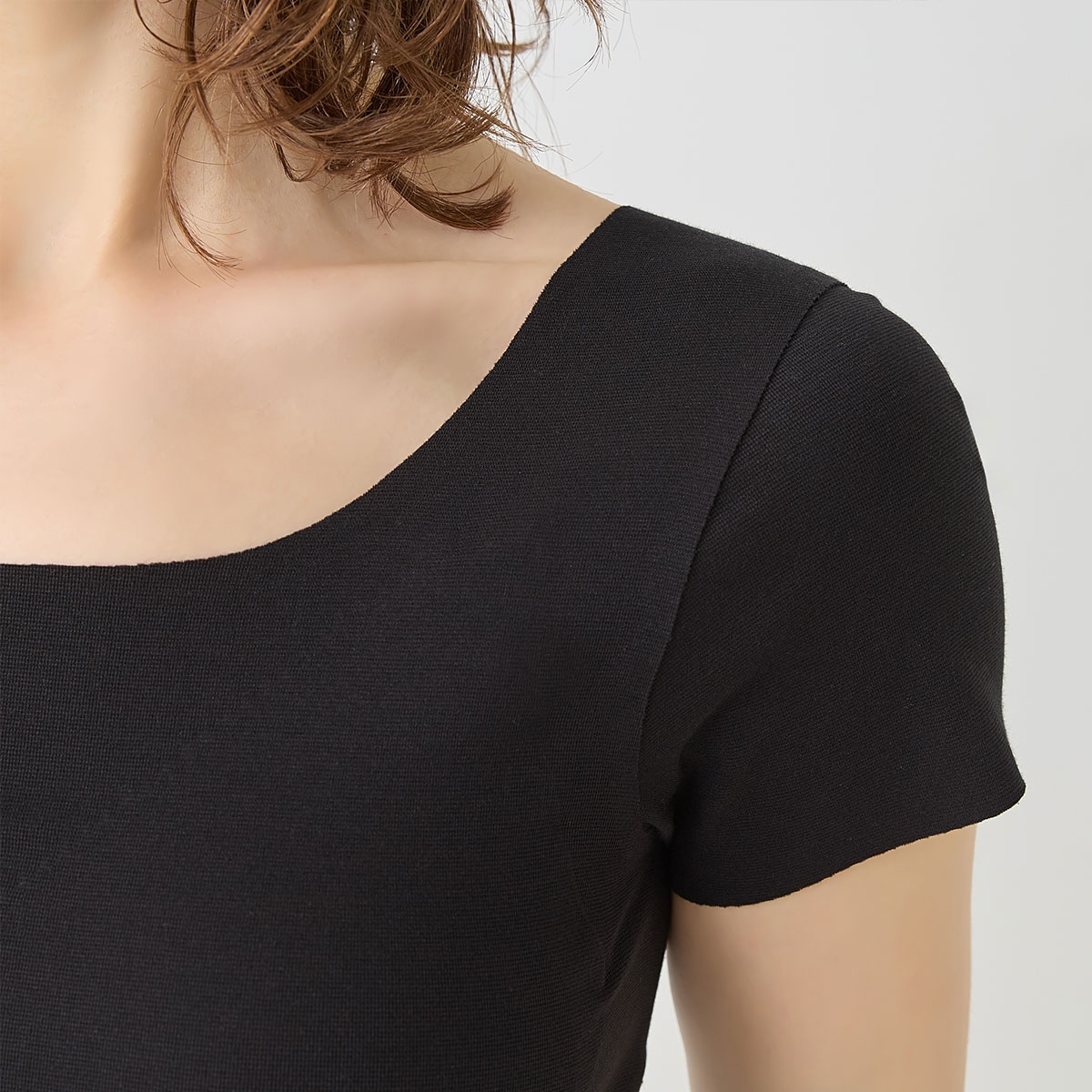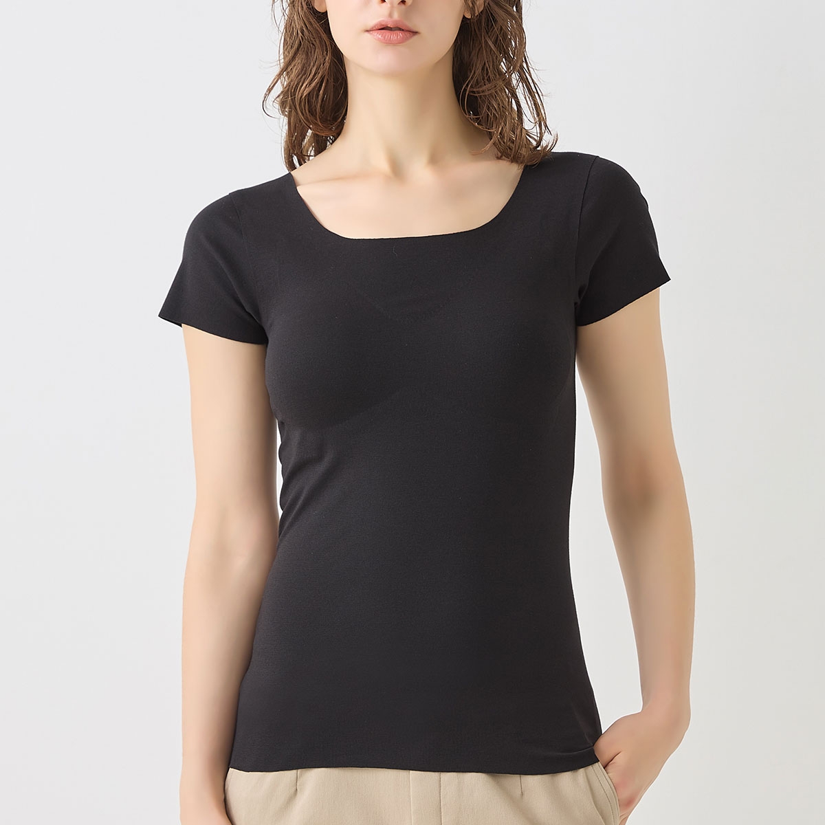 オーガニックがつくる立体美。お肌へのやさしさと着心地を追求したブランド、Fitte(フィッテ)の肌側オーガニックコットン100% カップ付き2分袖インナーです。