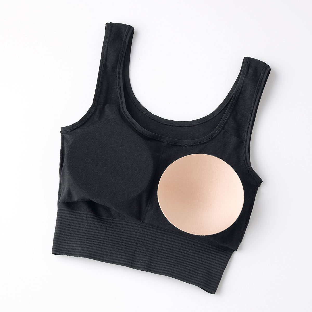 取外可能なパッドはプッシュアップ機能を備え、コンパクトに折りたためて便利。パッドポケットを肩から引き上げることでバストを持ち上げるリフトアップ機能付。肌あたりのよい綿/レーヨン混素材にうるおい保湿加工を施し、お肌にやさしいハーフトップに仕上がっています。