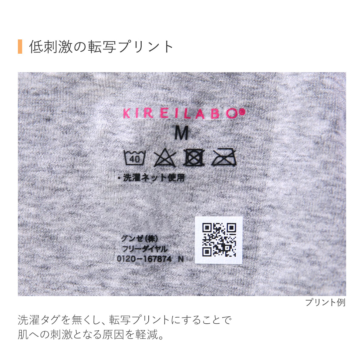 洗濯タグをプリントにして、チクチクする刺激を軽減。乾燥する季節に嬉しい、グンゼオリジナルのうるおい保湿加工が肌をやさしく包み込みます。