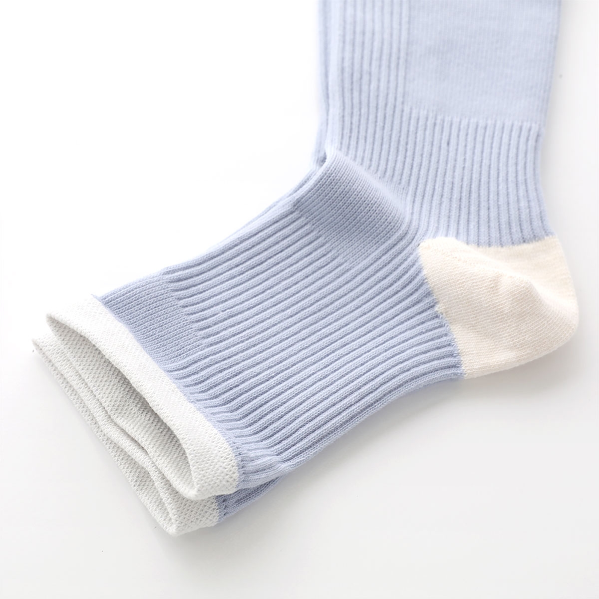 かかと肌側部分にシルクを使用したソフト着圧のトゥレスソックス。オーガニックコットンを使用しお肌にやさしく、ほどよい引き締め感で心地よいはき心地です。