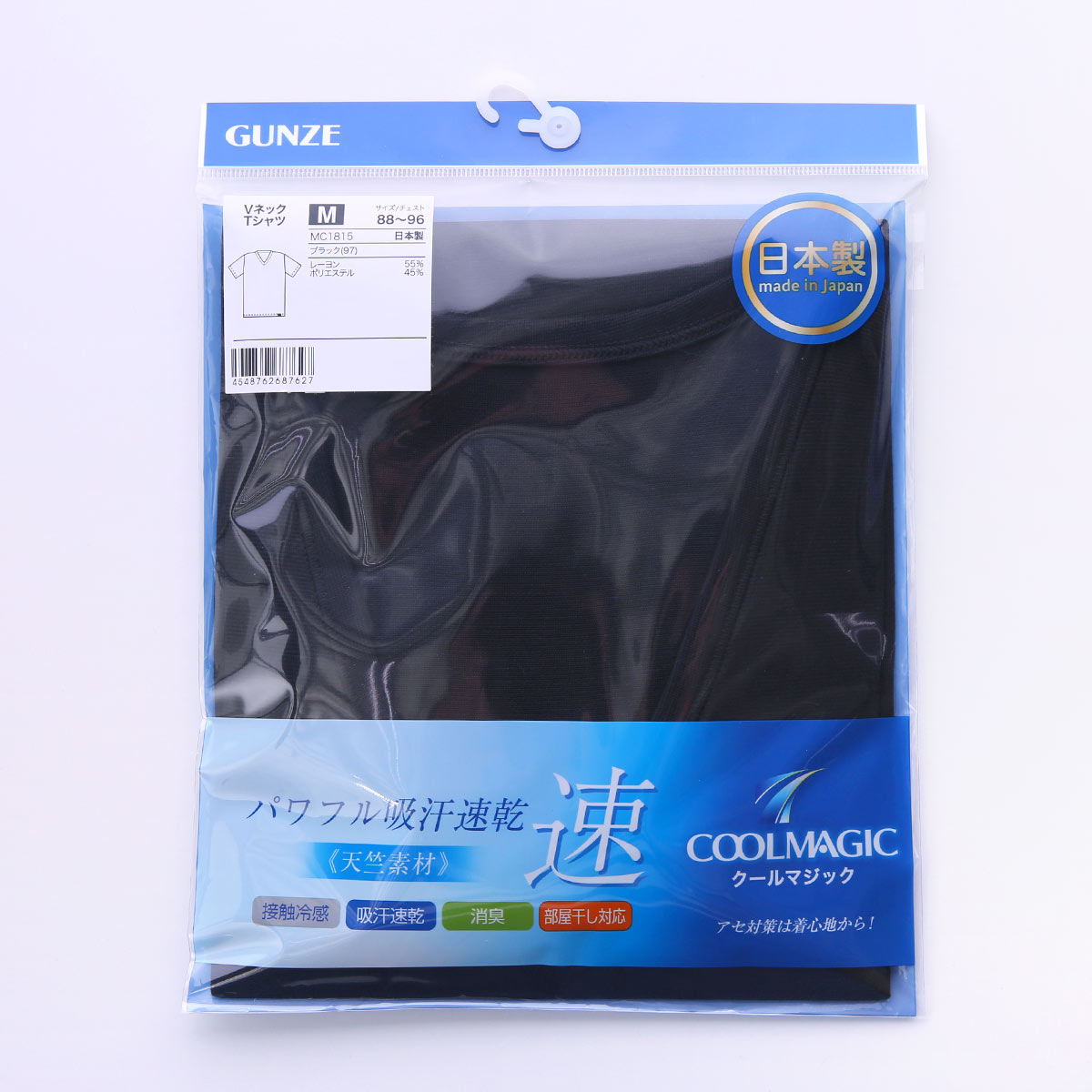 グンゼ GUNZE クールマジック COOLMAGIC 吸汗天竺VネックTシャツ 吸汗速乾 消臭 冷感(BK-ブラック-M) SOLDOUT