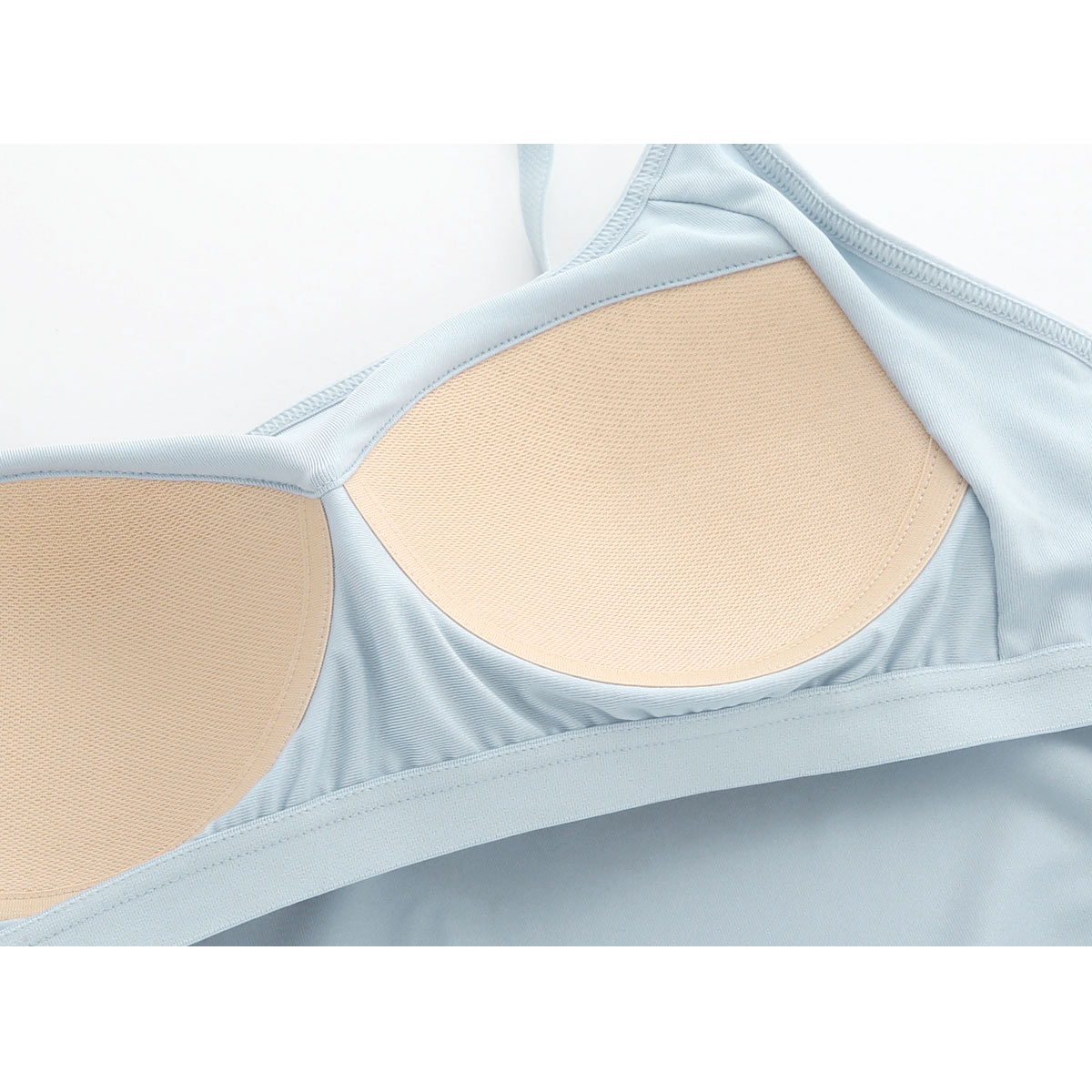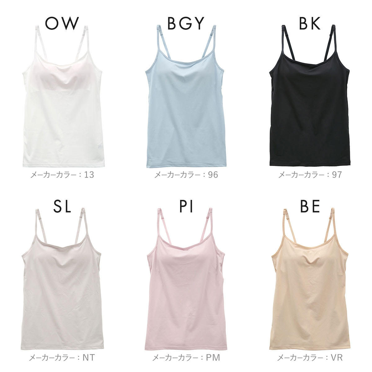 | 仕 様 | ・一体型モールドカップ内蔵 ・パッド取外し:不可 ・パッドポケットなし ・肩紐調節:可能 ・肩紐取外し:不可 ・透感:なし ・アンダーゴムあり ・吸汗速乾 |