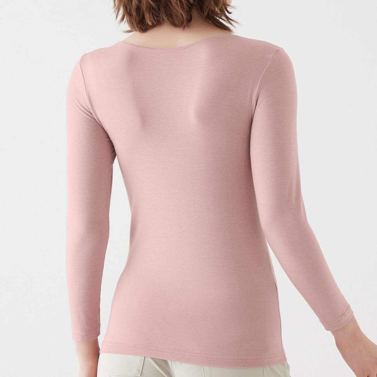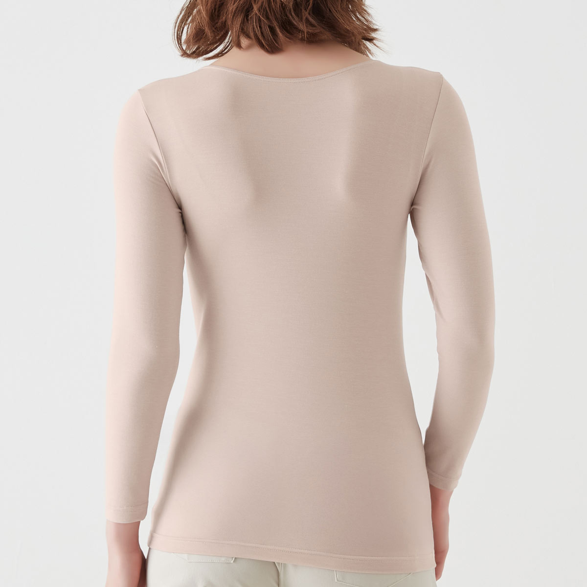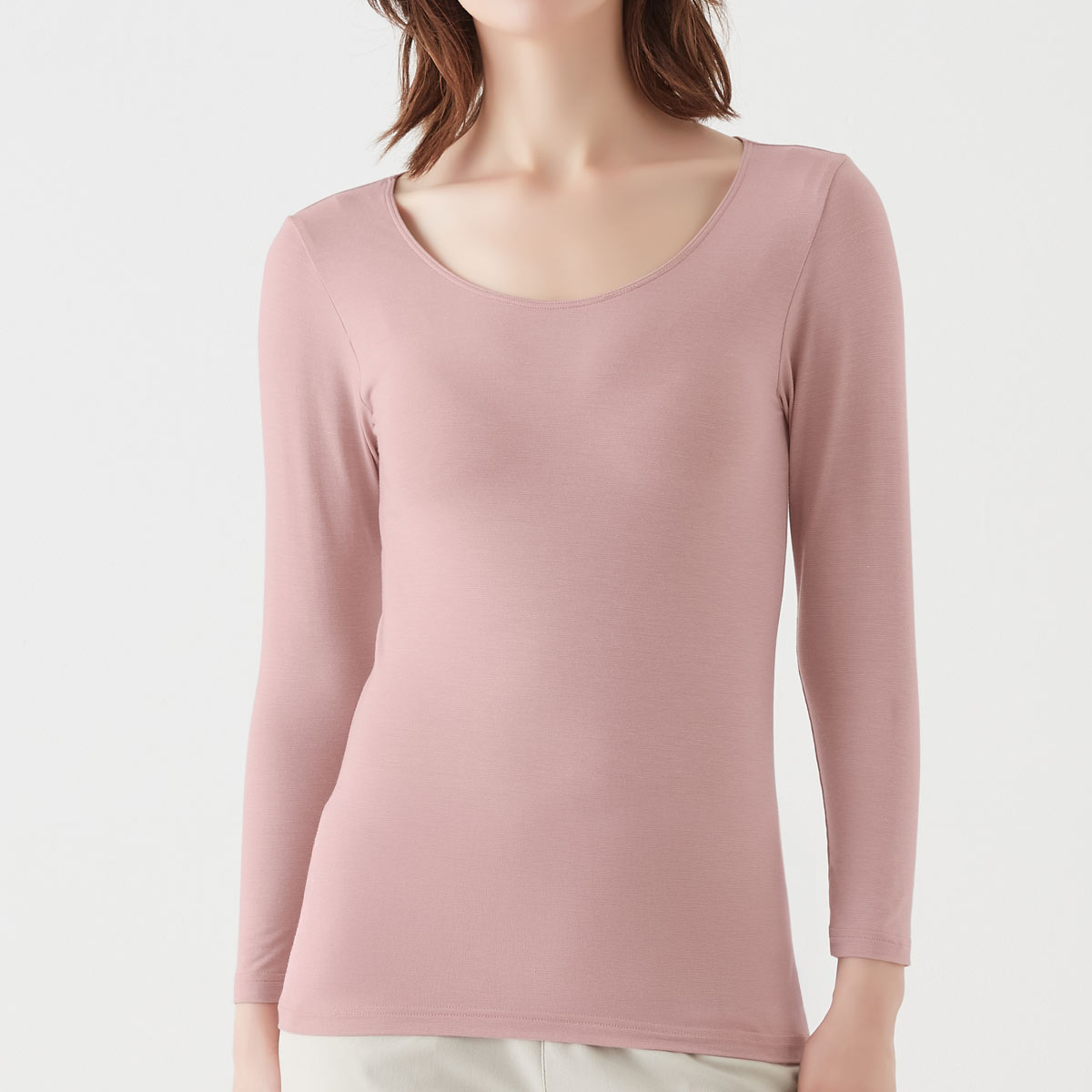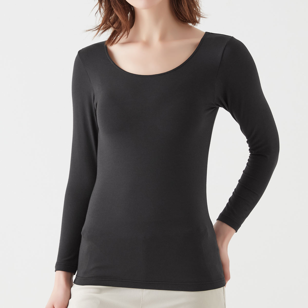 驚きの軽さと薄さ タイトな服の下でもシルエットに響かず、肩こりしにくい軽量設計。秋口から春先まで長く使えます。汗をかいても「冷えない」 吸放湿性に優れ、暖房の効いた室内での汗ムレや、その後の汗冷えを徹底ガード。1日中さらさらの肌触りが続きます。効率的な「吸湿発熱」 身体から出る湿気を熱に変え、薄手ながらもしっかりとしたぬくもりをキープします。使い勝手の良い「8分袖」 アウターの袖口からはみ出しにくく、手元がスッキリ見える絶妙な丈感です。
