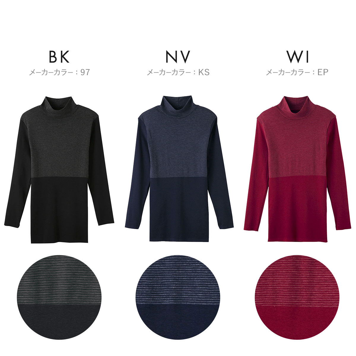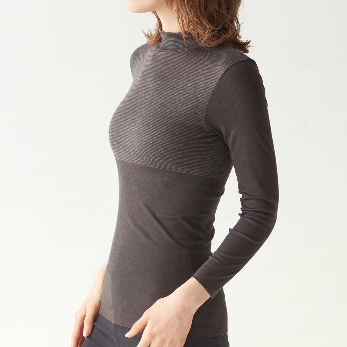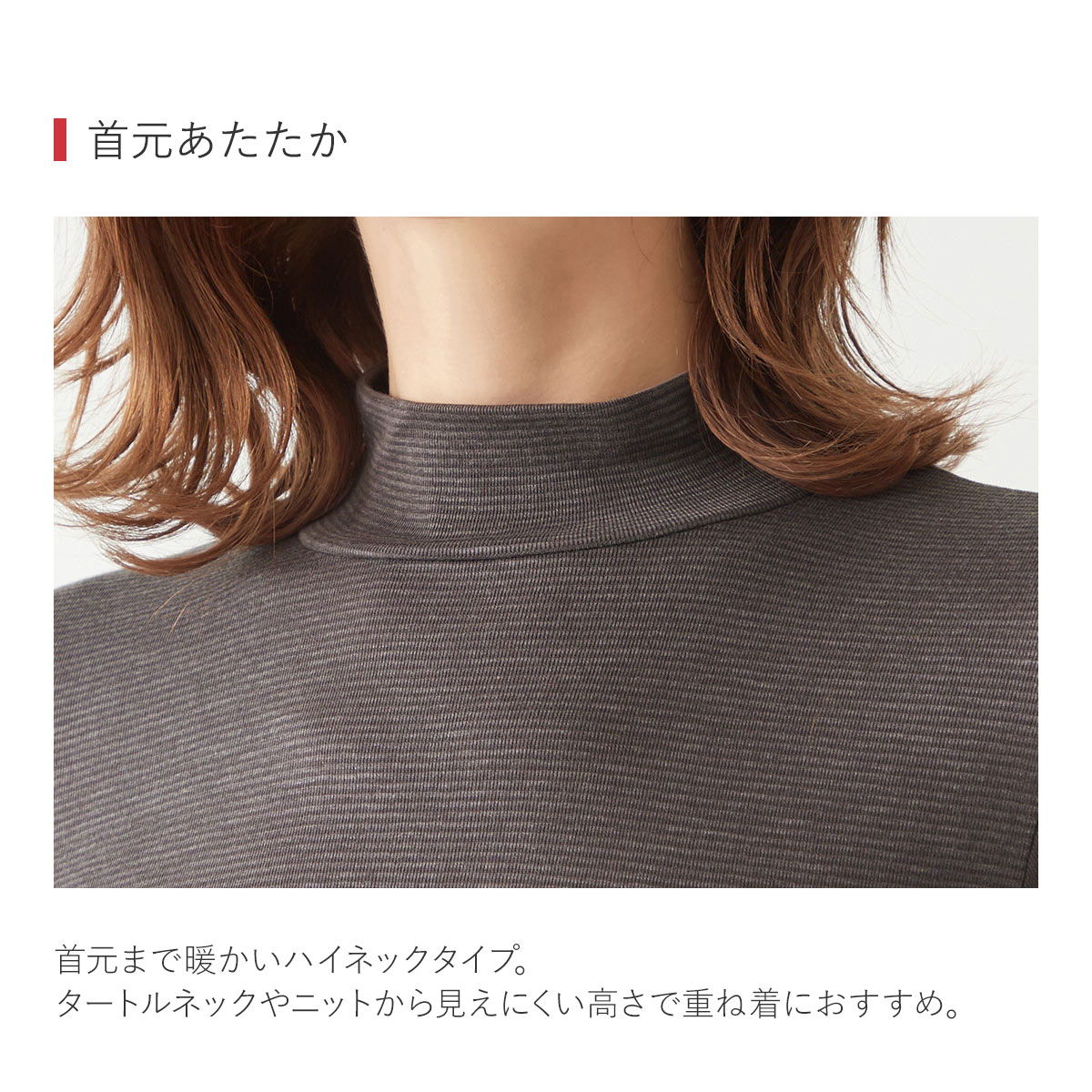 冷えやすい首まわりをあたたかく保つハイネックです。タートルネックの下や、ニットの重ね着におすすめ。