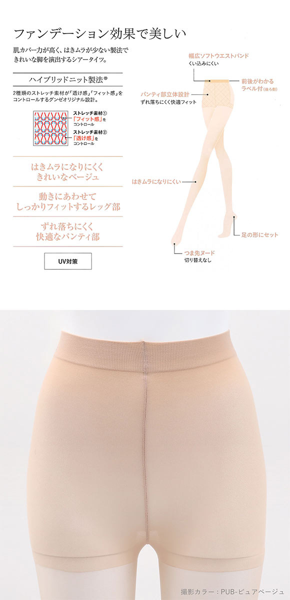 ファンデーション効果で美しい はきムラが少ないシアータイツ
