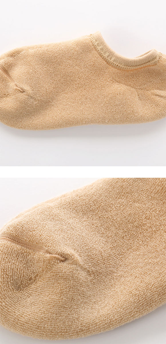 肌あたりのやさしい綿混素材を使用。さらっと快適なはき心地に。足底はマイクロパイル設計で足底全体をカバー。つま先・かかと部分を補強し、強度を高めた作りとなっています。かかと上部に滑り止めを配し、ズレを防止します。