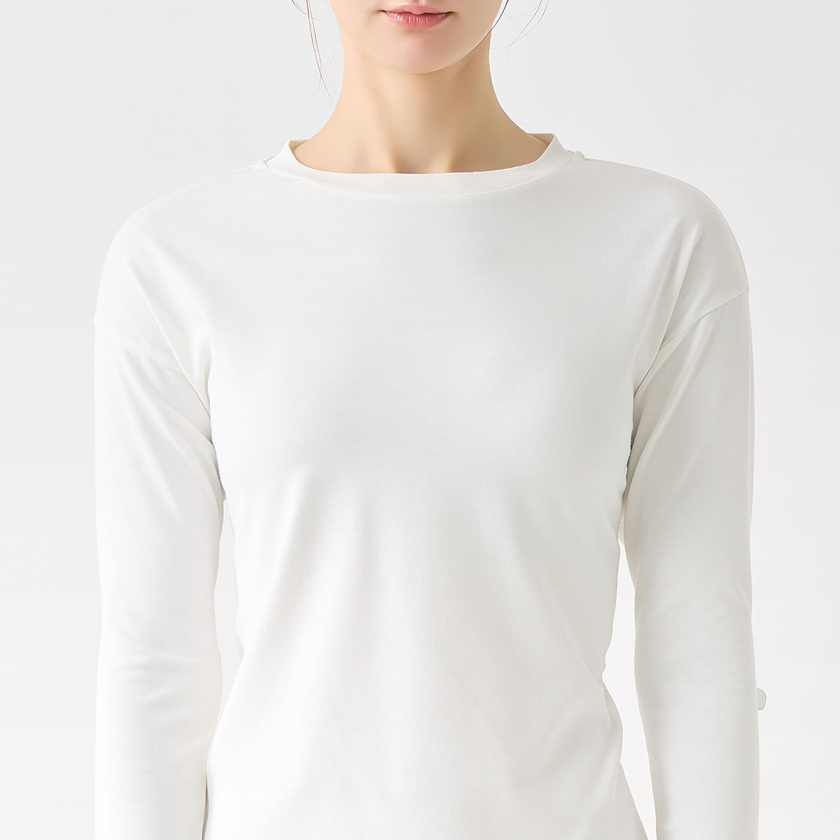 肌化する心地よさ:切りっぱなしのカットオフトリコット素材を採用。縫い目や段差を極限まで減らし、肌に溶け込むようななめらかな肌触りを実現しました。