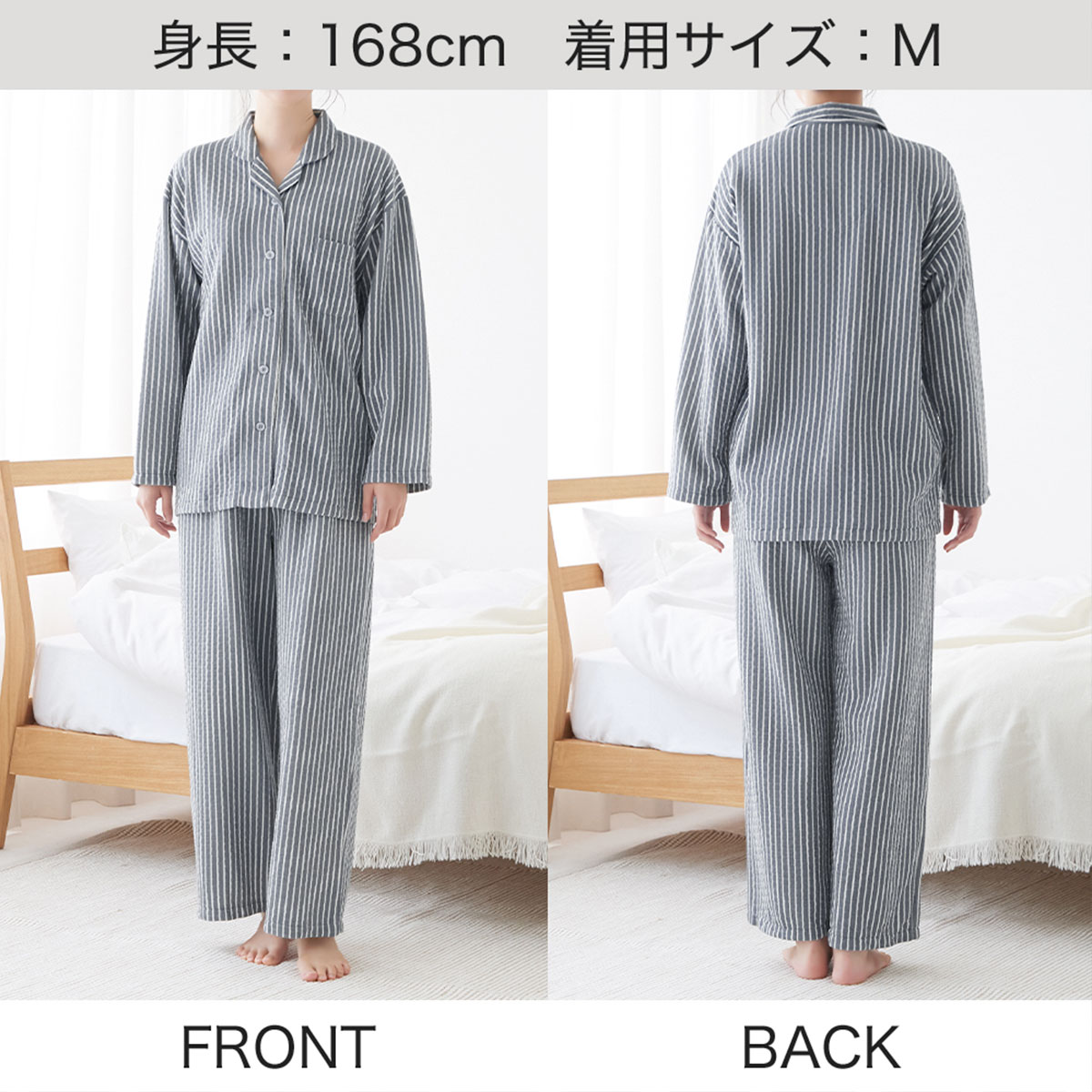 | 仕 様 | トップス ・身丈:(S)64.5cm (M)67cm (L)約69.5cm ボトム ・パンツ丈:(S)90cm (M)92cm (L)約94cm ・股下:(S)60.5cm (M)61.5cm (L)約62.5cm ・吸湿発熱 ・吸放湿 ・ウエスト調整ゴム ・ウエストゴム取替口あり