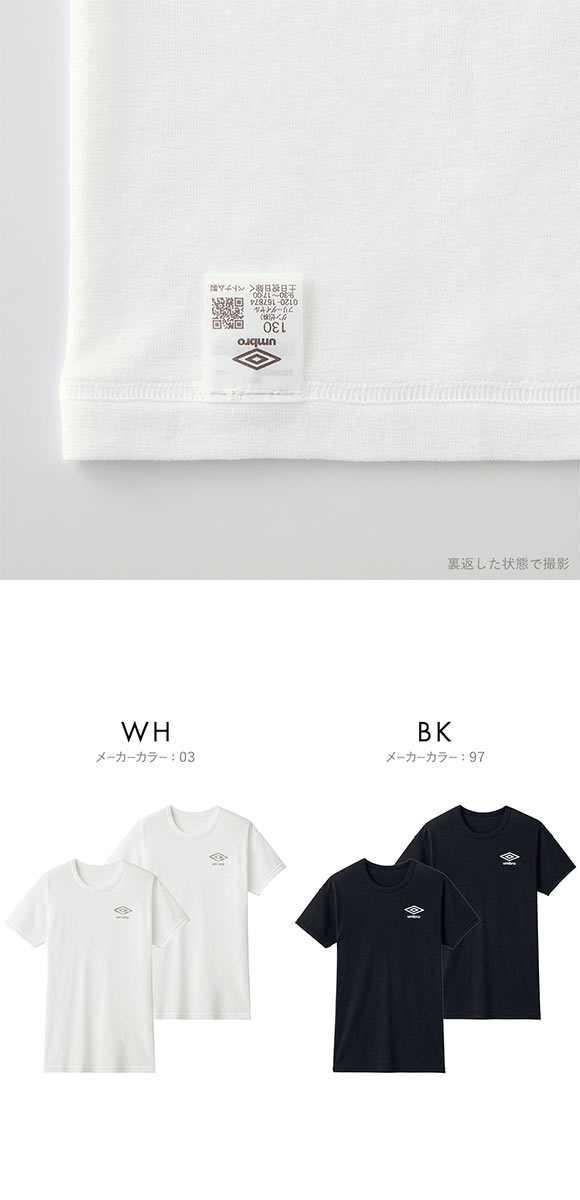 アンブロ UMBRO キッズ ジュニア 無地 クルーネック Tシャツ インナー 2枚組 130-170(WH-ホワイト-130) SOLDOUT