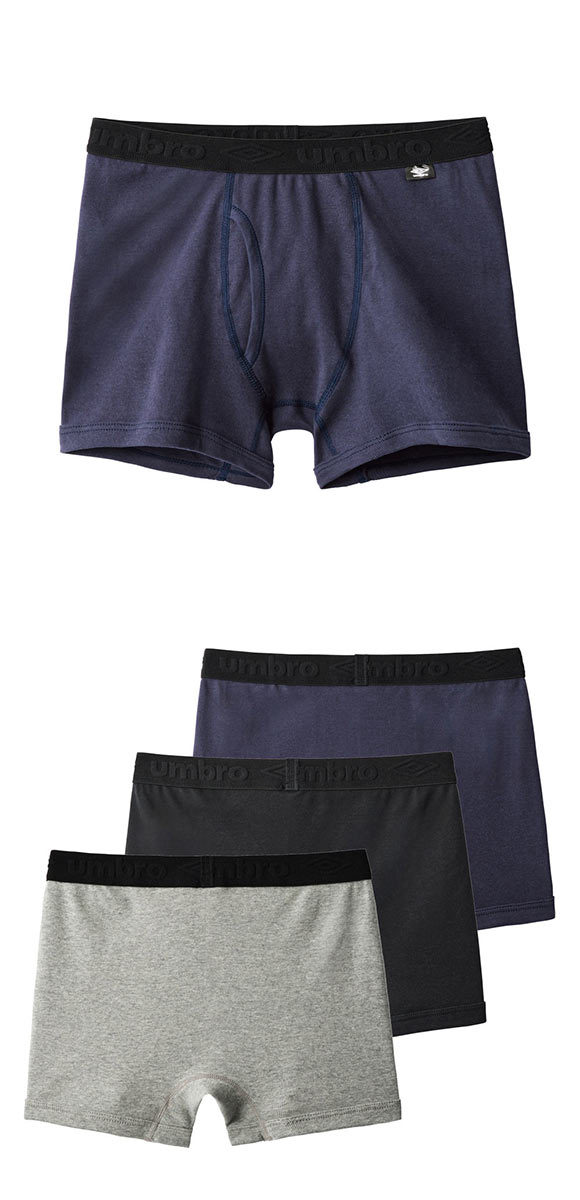アンブロ UMBRO 3P キッズ ジュニア 男の子 男児 ボクサーパンツ 3枚組 前あき 140-170