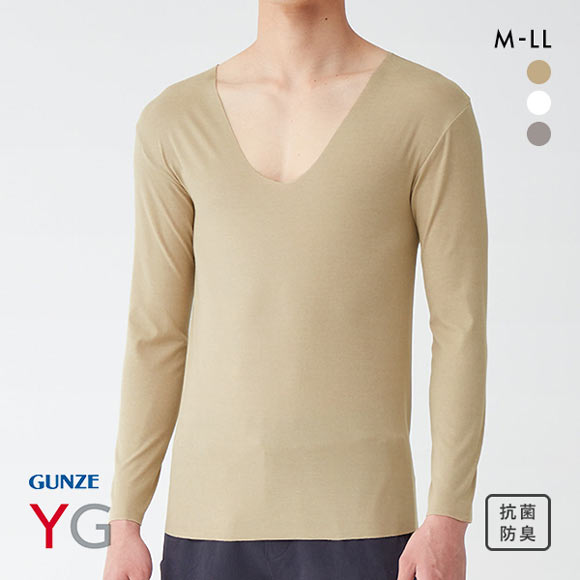グンゼ GUNZE ワイジー YG ネクストラ NextRA+ カットオフ CUT OFF クルーネック 長袖 Tシャツ メンズ 抗菌防臭 日本製(BE-ベージュ-M) SOLDOUT