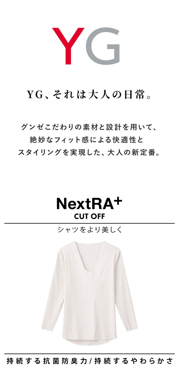 グンゼ GUNZE ワイジー YG ネクストラ NextRA+ カットオフ CUT OFF クルーネック 長袖 Tシャツ メンズ 抗菌防臭 日本製