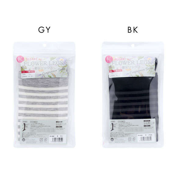着圧ソックス ボーダー柄 靴下 ハイソックス 着圧 M-L L-LL 3L-4L 5L-6L 大きいサイズ(GY-グレー-M-L)