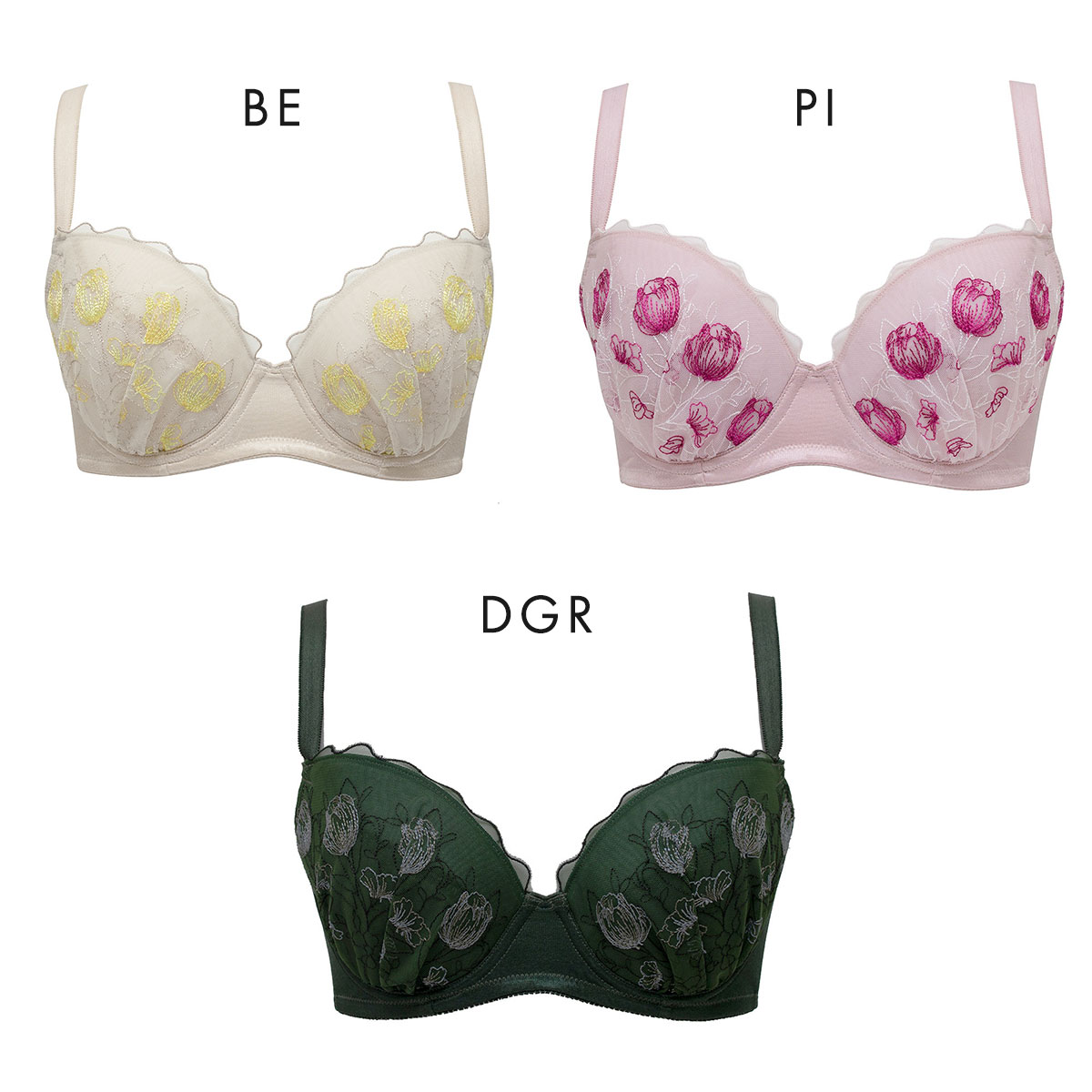 大きめバストにも映える可憐な花柄を刺繍で表現した上品なデザイン。しっかり品質&お手ごろ価格でお探しのグラマーさんにオススメです!