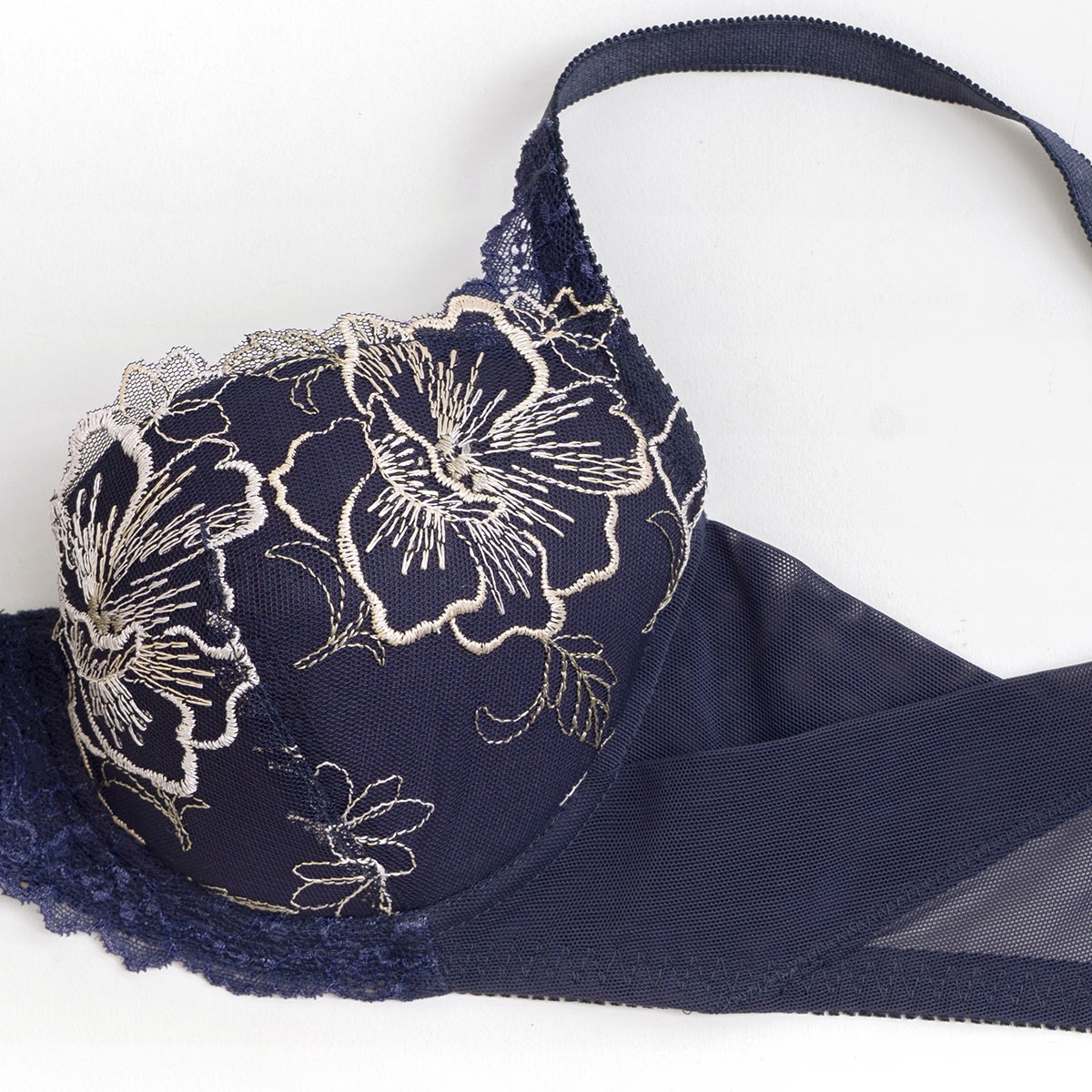 大人の女性におススメのエレガントなレースデザイン。繊細な刺繍で描かれた花が上品で華やかな胸元を演出します。
