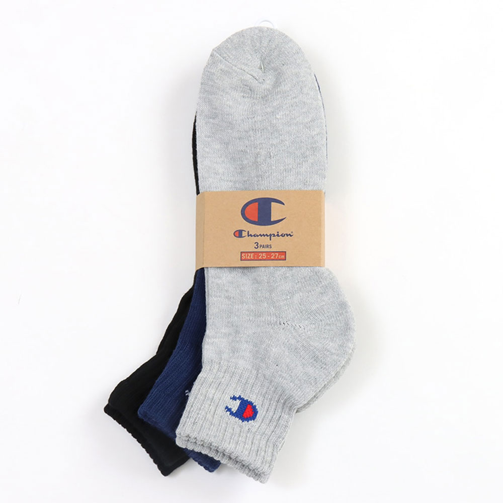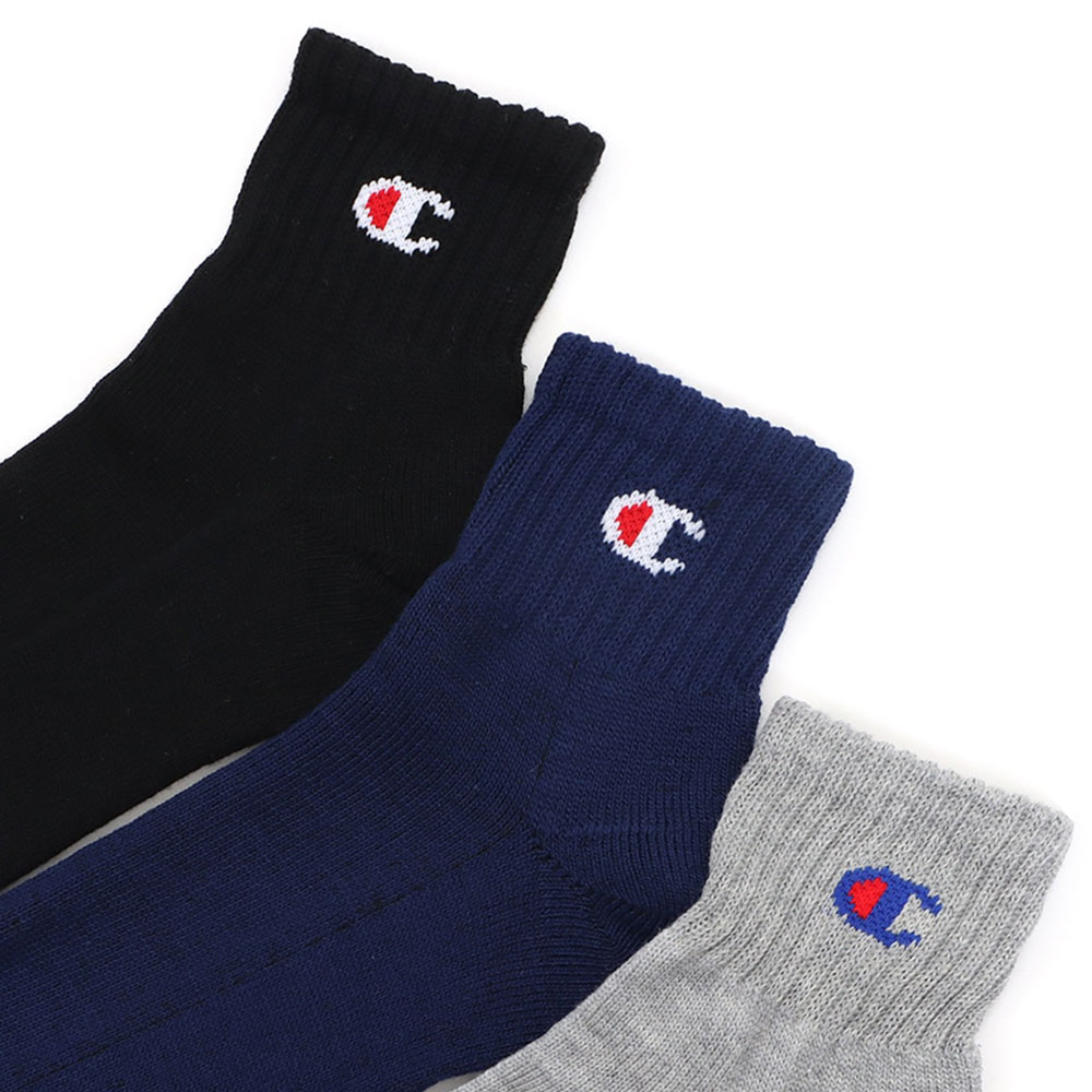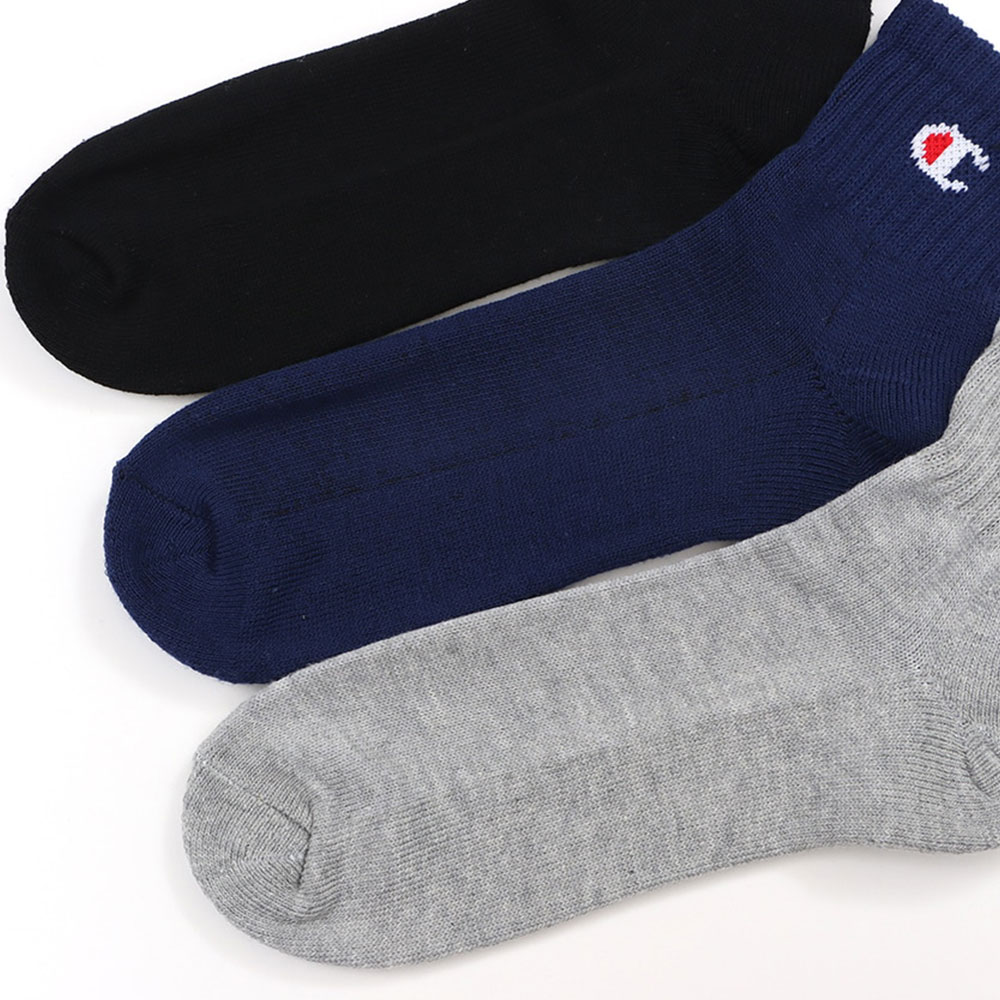 3足組クォーターレングス丈足底ハーフパイル仕様のソックスです。ざっくりと編んだリブによる柔らかなフィット感と、足底クッションの心地良い着用感が特長。ワンポイントにCロゴを入れたChampion定番のロングセラーデザインです。同色と3色カラーアソートの2タイプ。